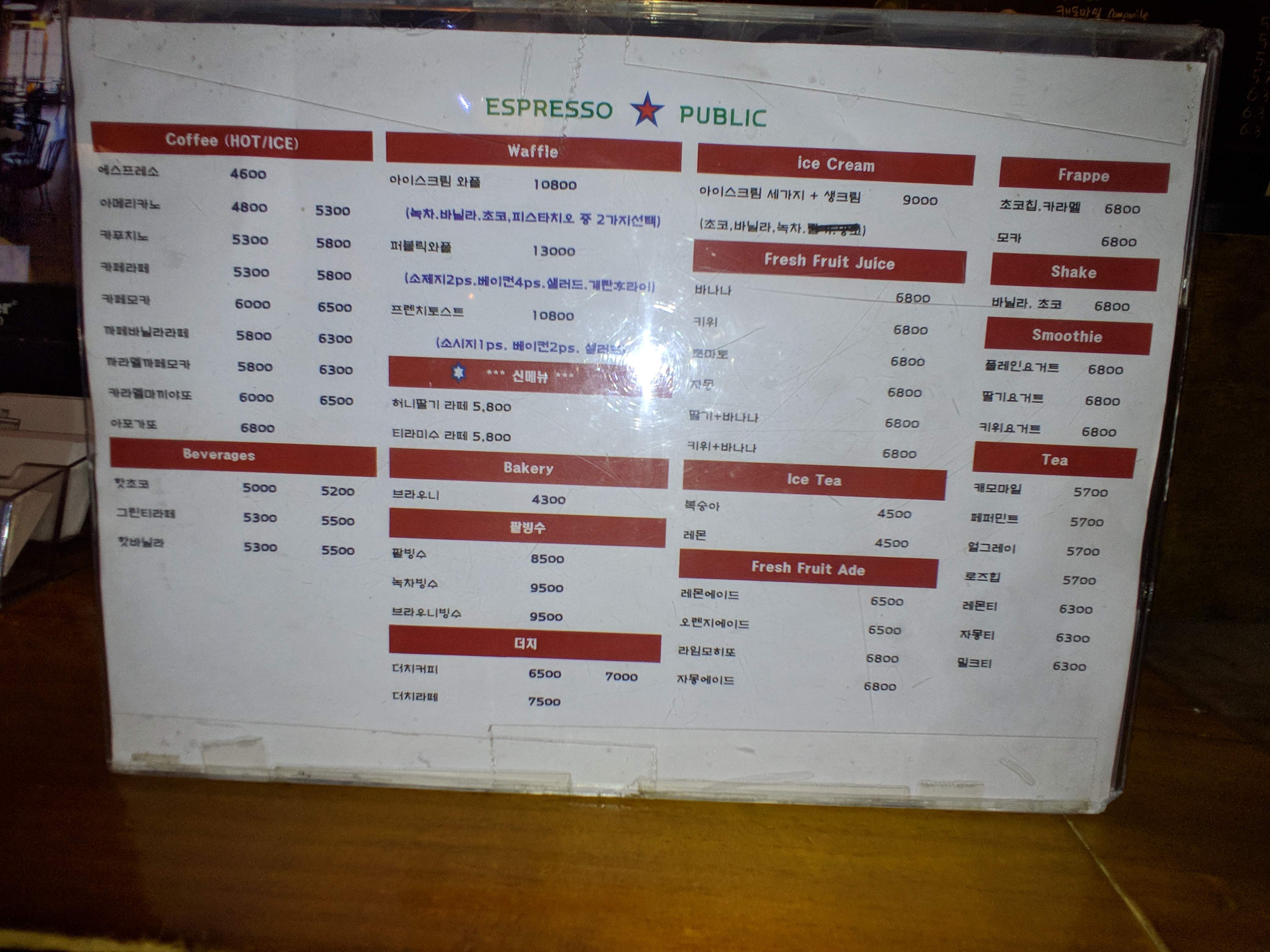 1층에는 사람이 많아서 2층으로 올라갔습니다. 일단 주문을 먼저 하려고 보니 메뉴들이 다 손으로 쓰여져 있네요. 저희는 남자 4명인 만큼 아이스크림을 주문했습니다. 사진을 미쳐 안찍었는데, 아이스크림이 3덩어리씩 나오는거라 혼자 먹기엔 조금 많은 양이었어요.