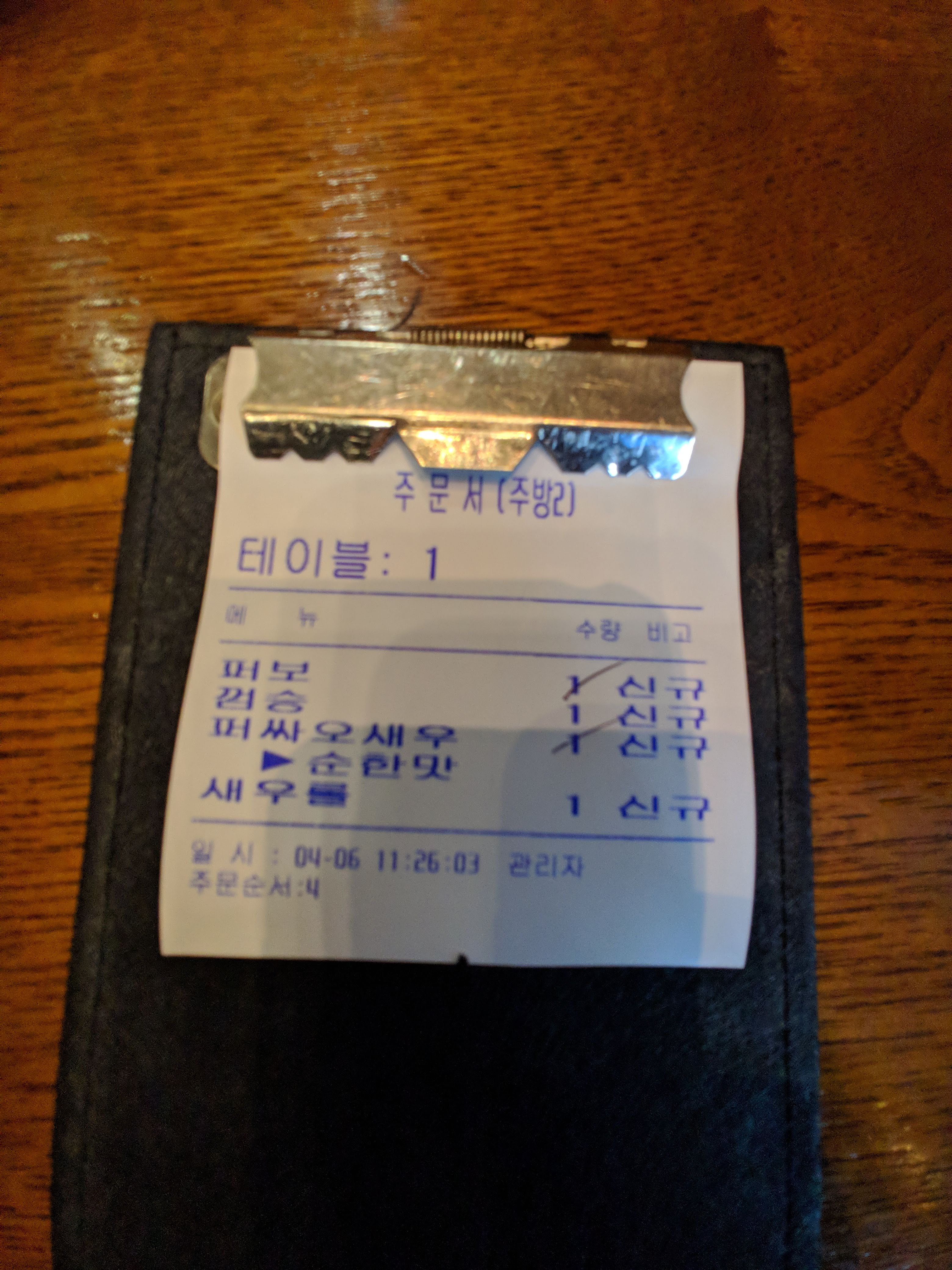 저희는 고민을 하다가 퍼보, 껌승, 퍼싸오새우, 새우롤 이렇게 주문했습니다.