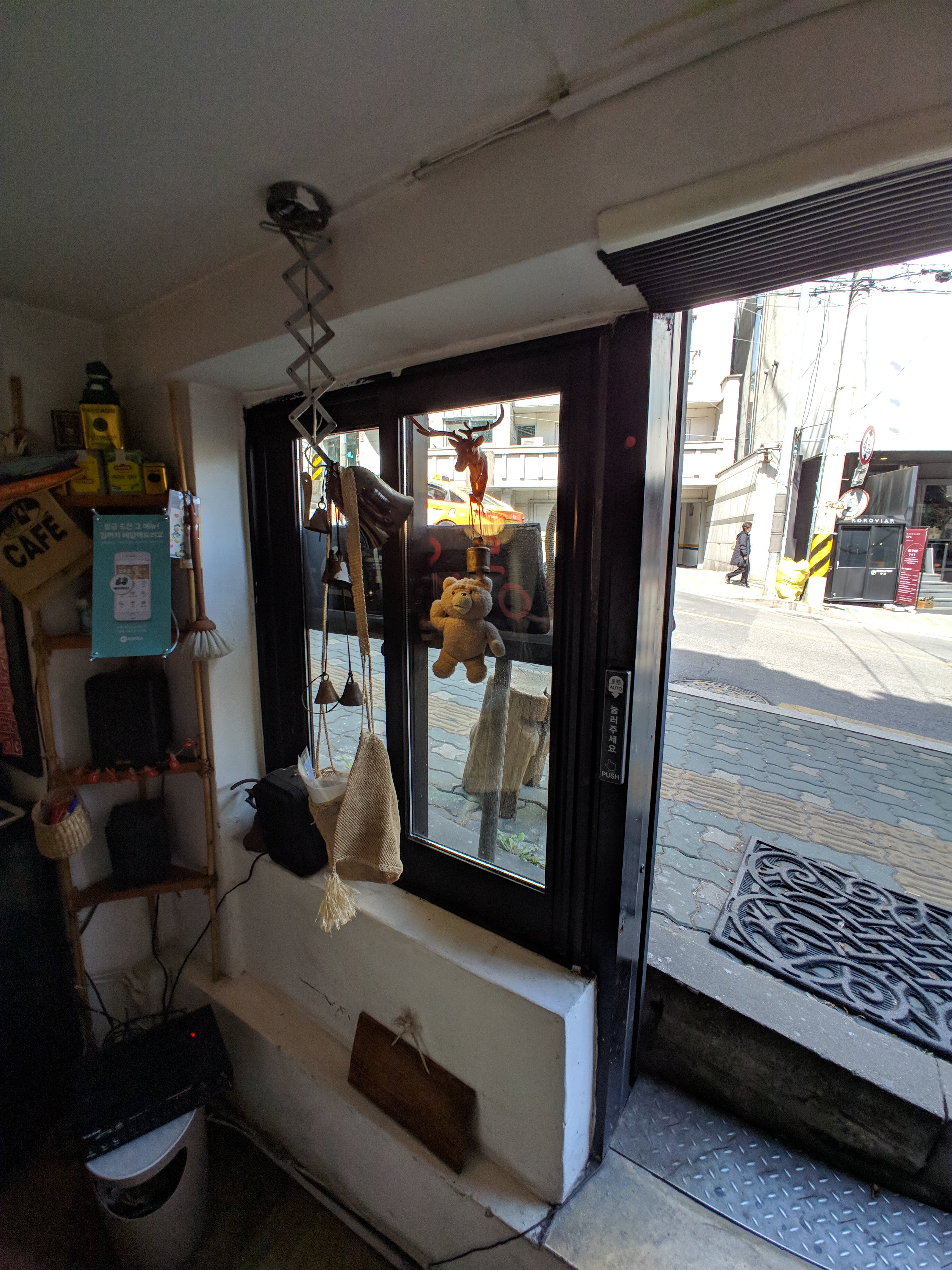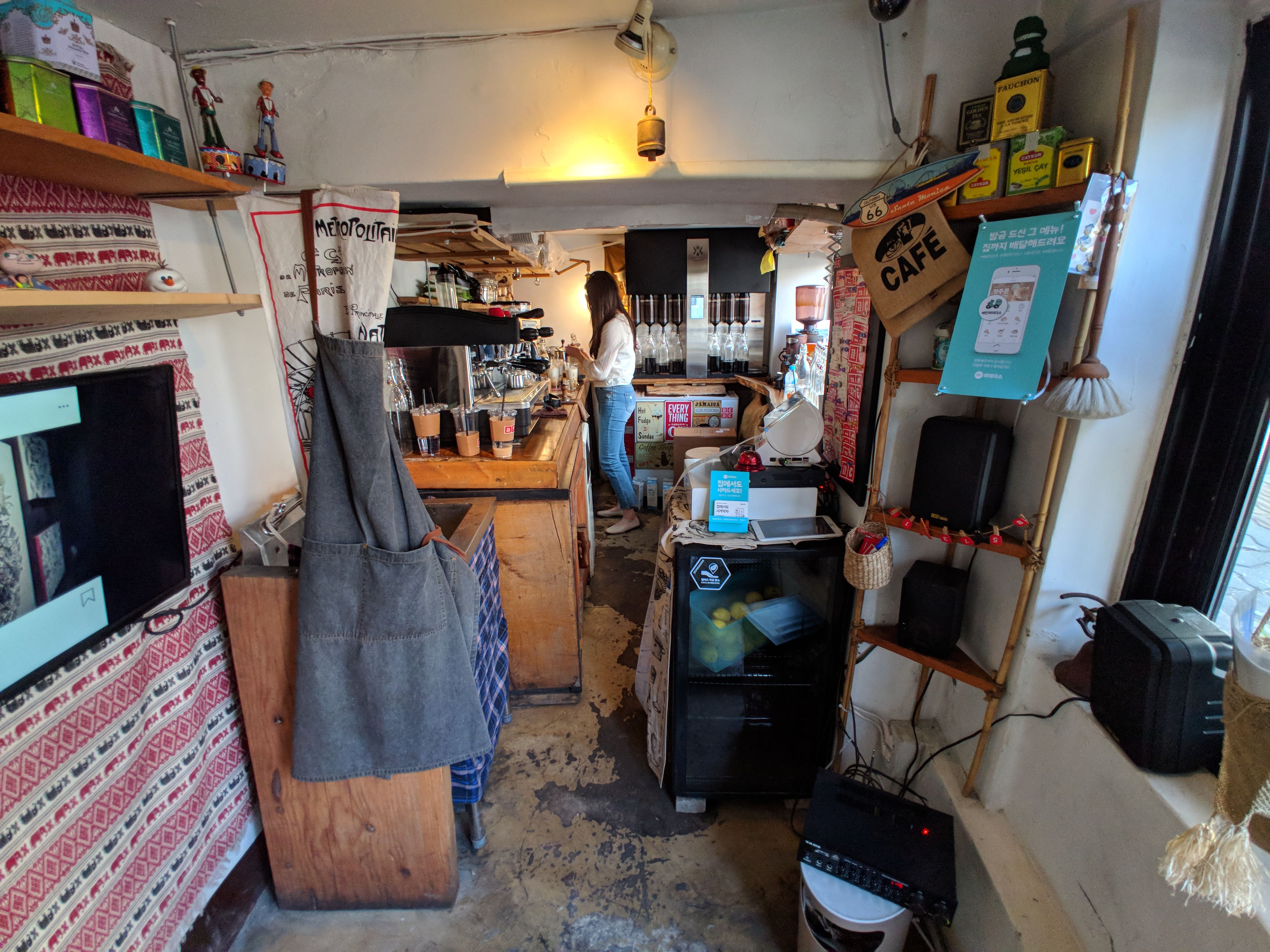 다 같이 마약 커피를 주문했습니다. 실내가 좁아서 주문할 사람만 들어가서 주문하고 나왔는데 실내가 이쁘다고 하길래 들어가서 사진을 찍었습니다. 실내에서 커피를 마실 공간은 없었습니다.