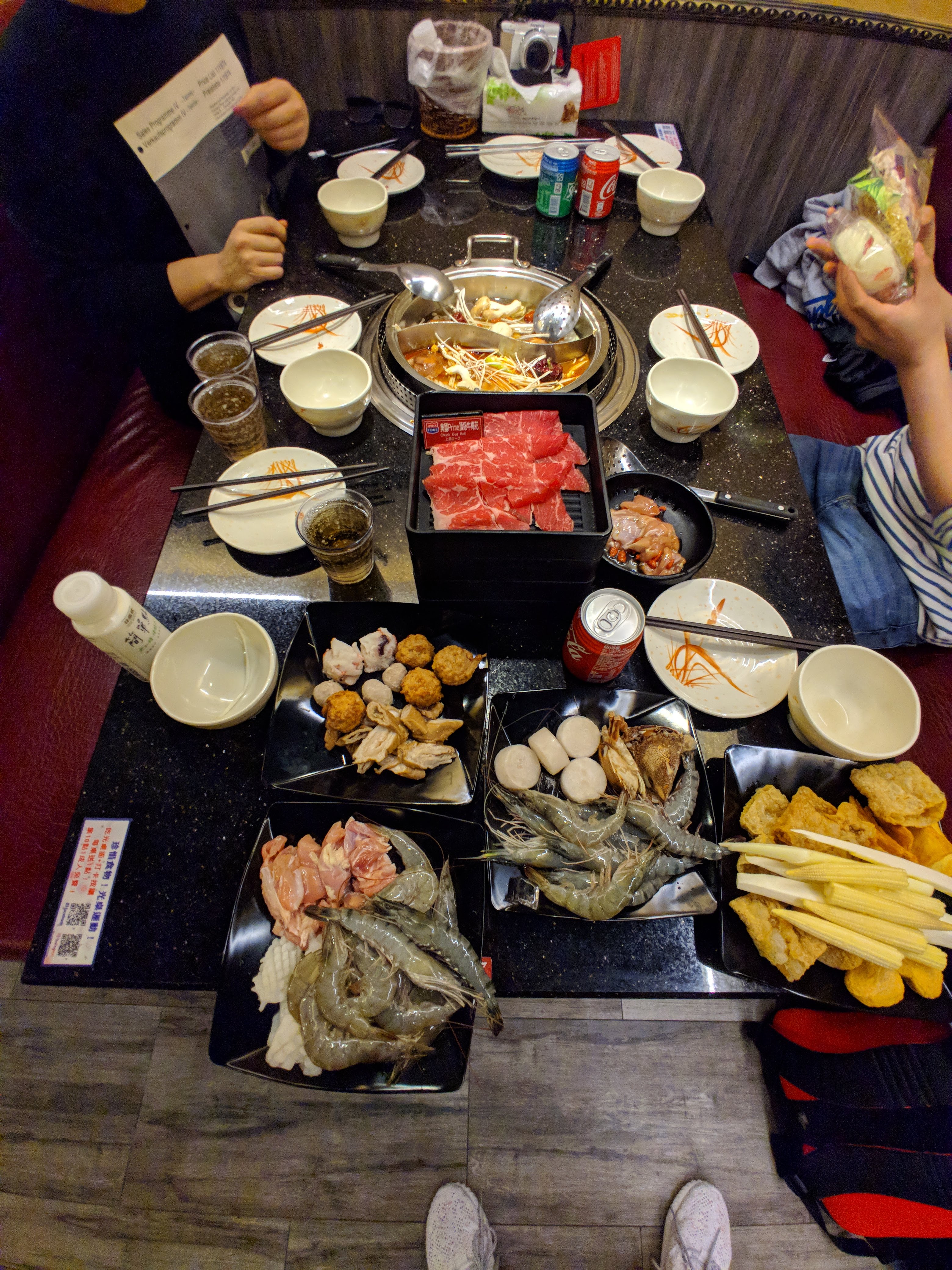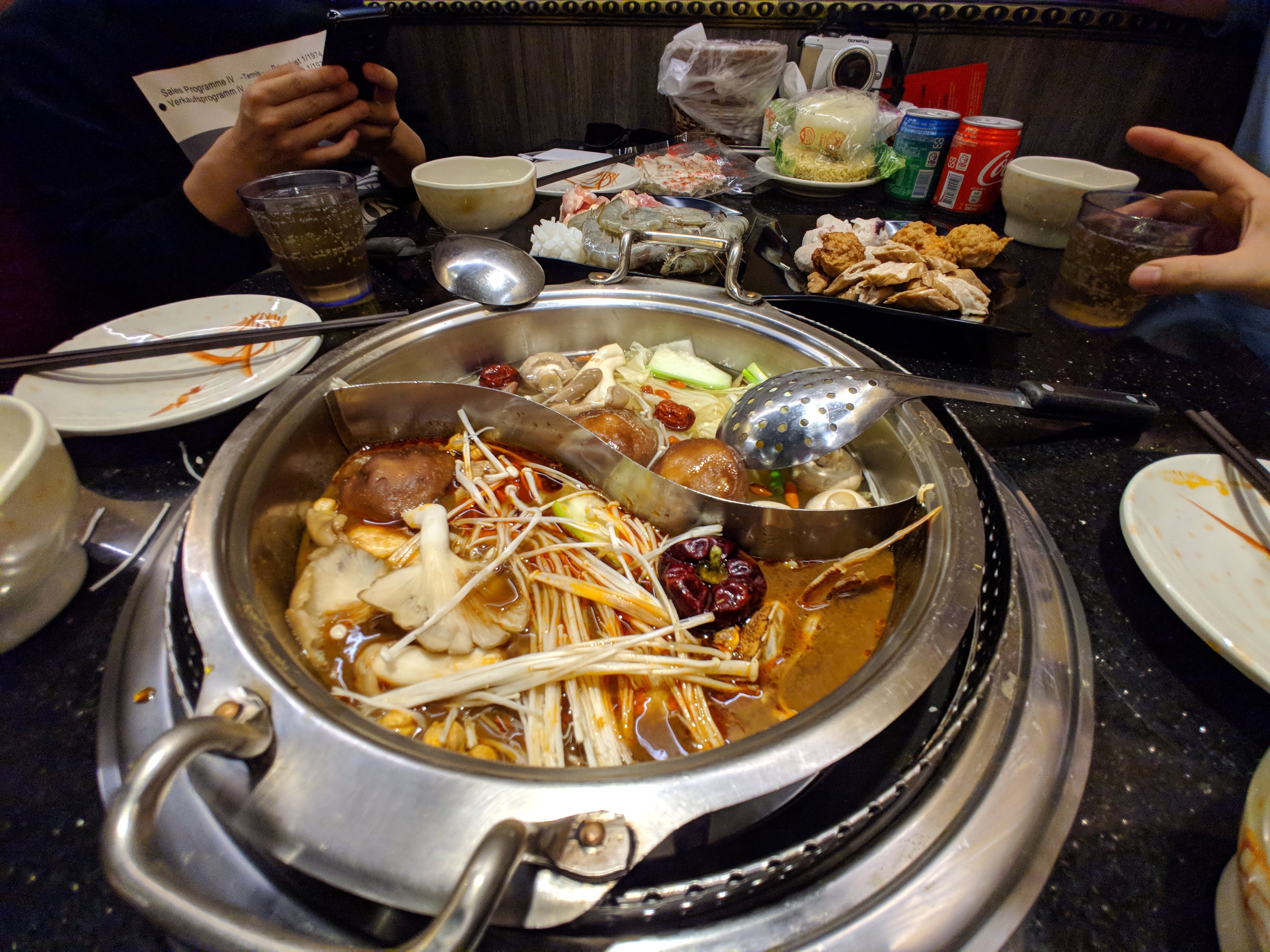 저희는 육수가 어떤게 좋을지 몰라서 물어보니 야채와 매운탕을 많이 하신다고 하셔서 그대로 주문했습니다. 먼저 야채와 오래 익혀야 하는 재료들 넘치도록 넣어 줬습니다. 먹다보니 육수가 부족해서 육수 리필도 한 두번했어요. 아저씨들이 재료를 막 넣어서 먹다보니 나중엔 육수가 넘쳐서 둘이 섞여 버렸었네요. 아무튼 배부르게 맛있게 먹었는데 다 먹고 생각해보니 한국에서 샤브샤브 무한 리필 가도 이정도는 나오는데 왜 우리가 여기까지 와서 이걸 먹었나 생각이 들더라구요. 차라리 진천미나 삼미식당 같이 한국에 없는 곳을 갔어야 하는 것이 맞는게 아니었나 생각이 들더라구요. 이걸로 추천하지 못하는 3번째 이유 : 한국에도 이정도 식당은 어렵지 않게 찾을 수 있다.