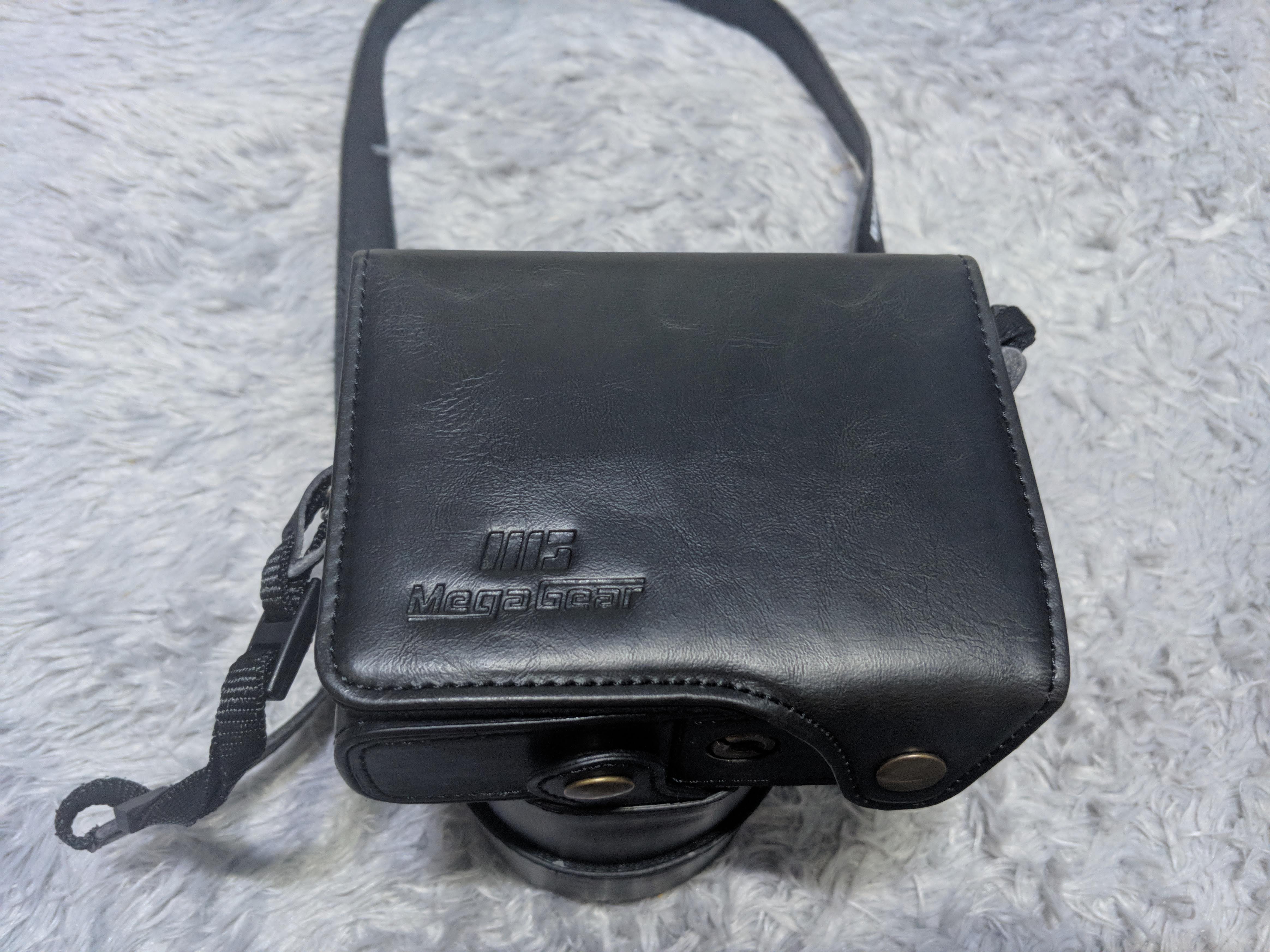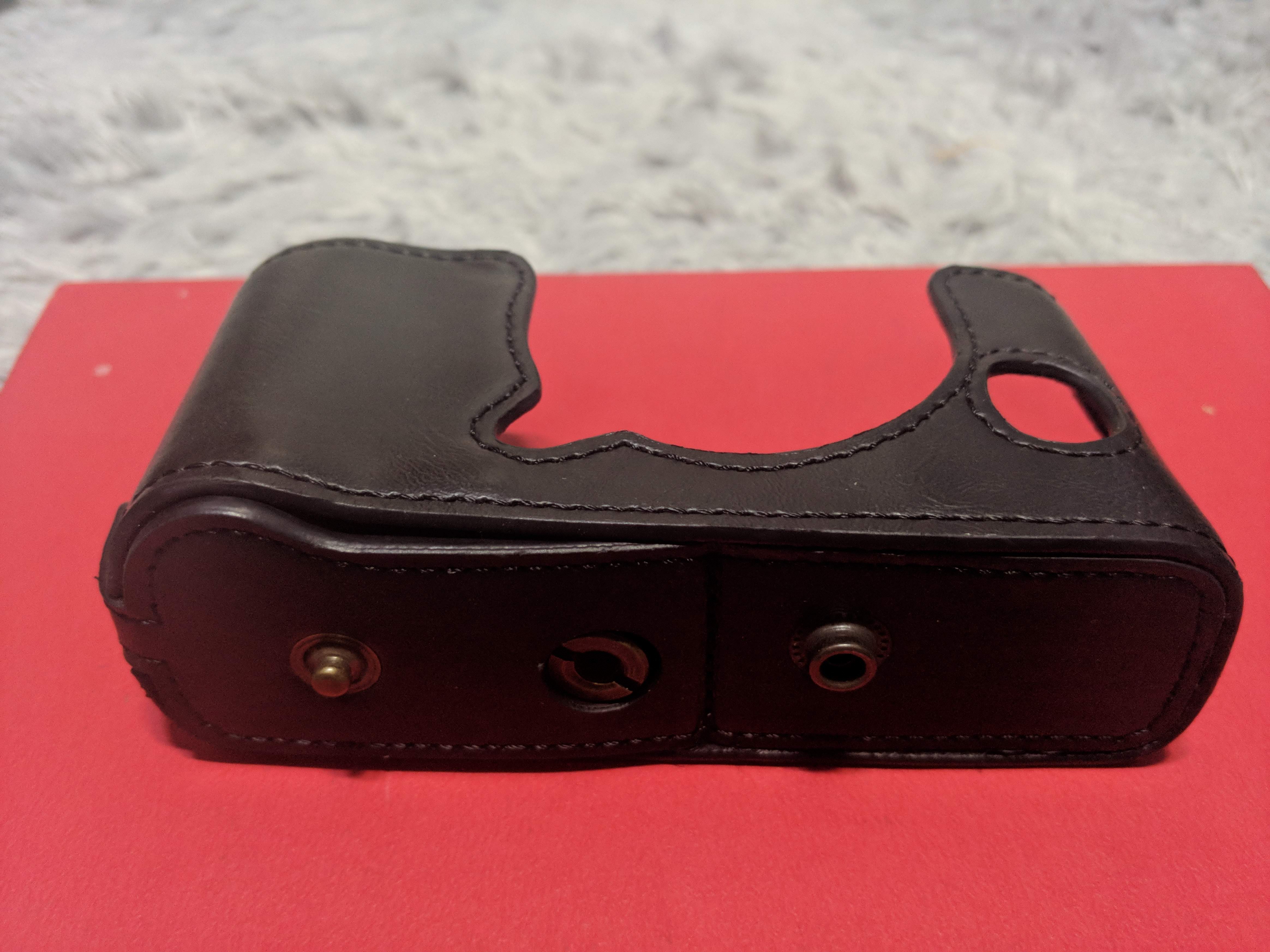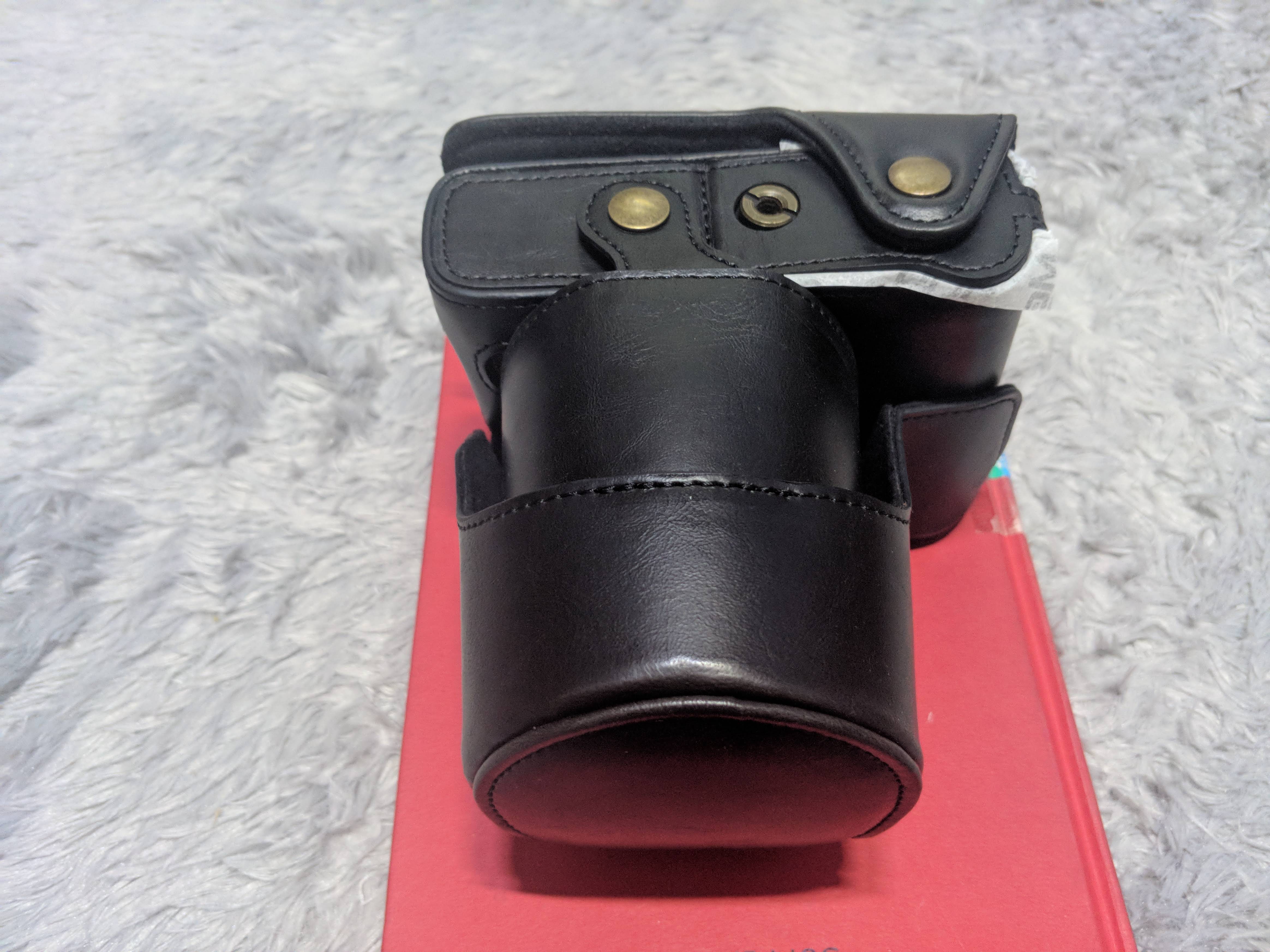 박스내 구성품 보면, 설명서(한글도 있음), 스트랩, 케이스가 들어 있었어요. 케이스는 아마존에서 본 이미지 보다는 상태가 괜찮아 보였어요. 카메라와 스트랩을 연결시키는 링은 사이즈가 바디의 구멍보다 커서 장착은 되는데, 움직이지 않네요. 조금 불안하게 설치가 됐어요.