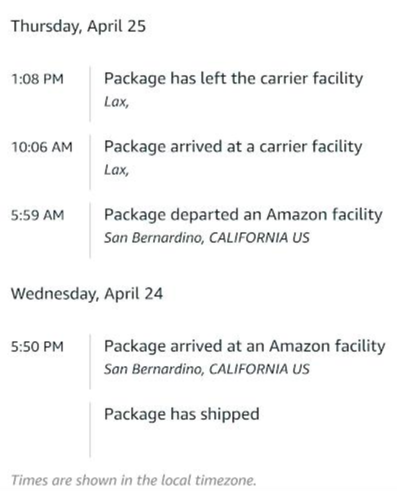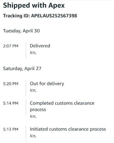 주문은 4/23일에 했고 배송은 4/30(오늘) 배송되었습니다.