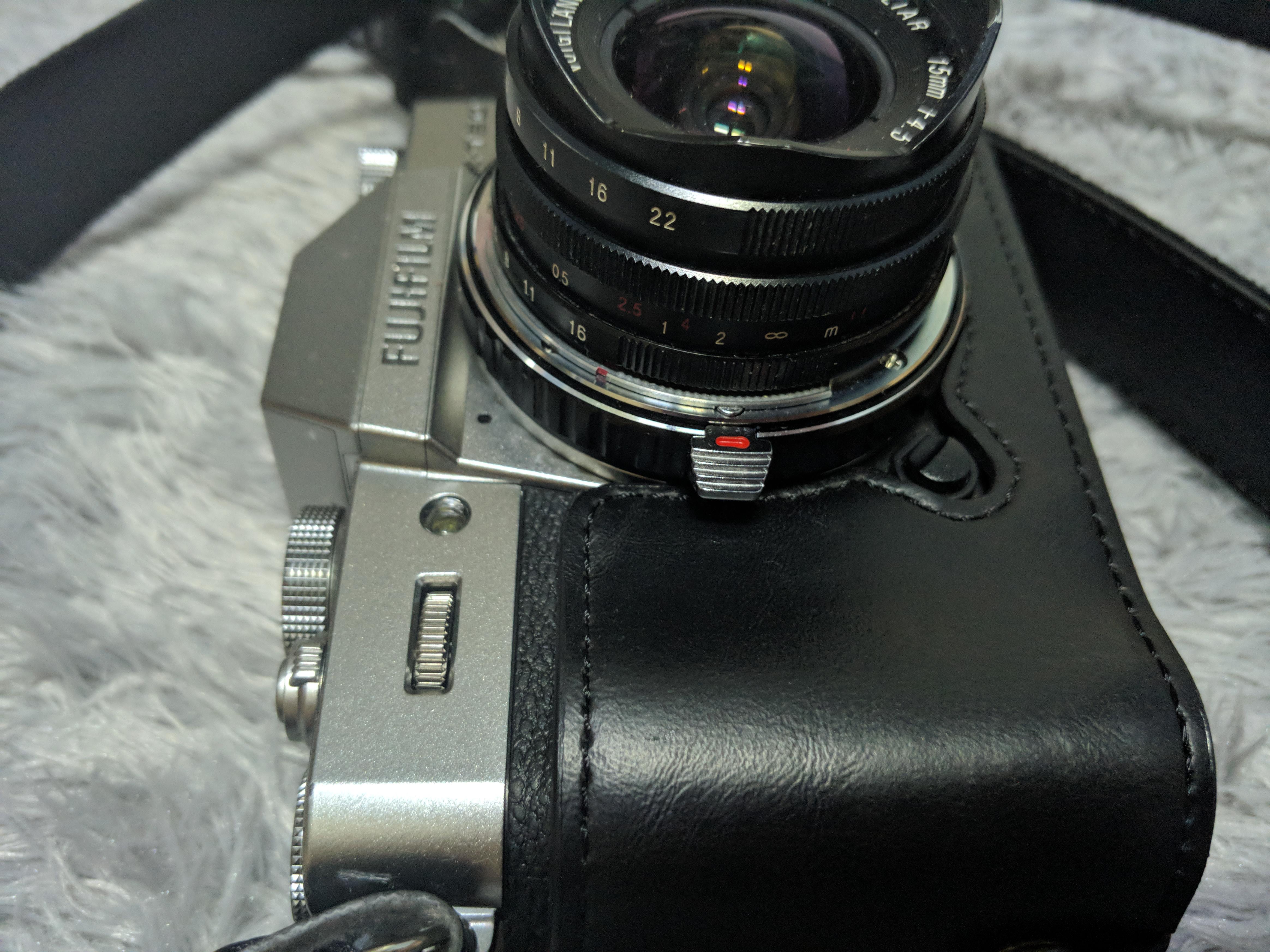 바디에 장착했습니다. 뭔가 100% 만족 스럽진 않네요. 미묘하게 안맞는 듯한 느낌이 드는데 그래도 실 사용하는데 문제는 없을 것 같습니다. M,C,S 부분은 앞서 말씀 드린대로 썩 만족스럽지 못하네요. 렌즈와 바디 마운트 되는 부분은 살짝 끼는 듯한 느낌이 듭니다.
