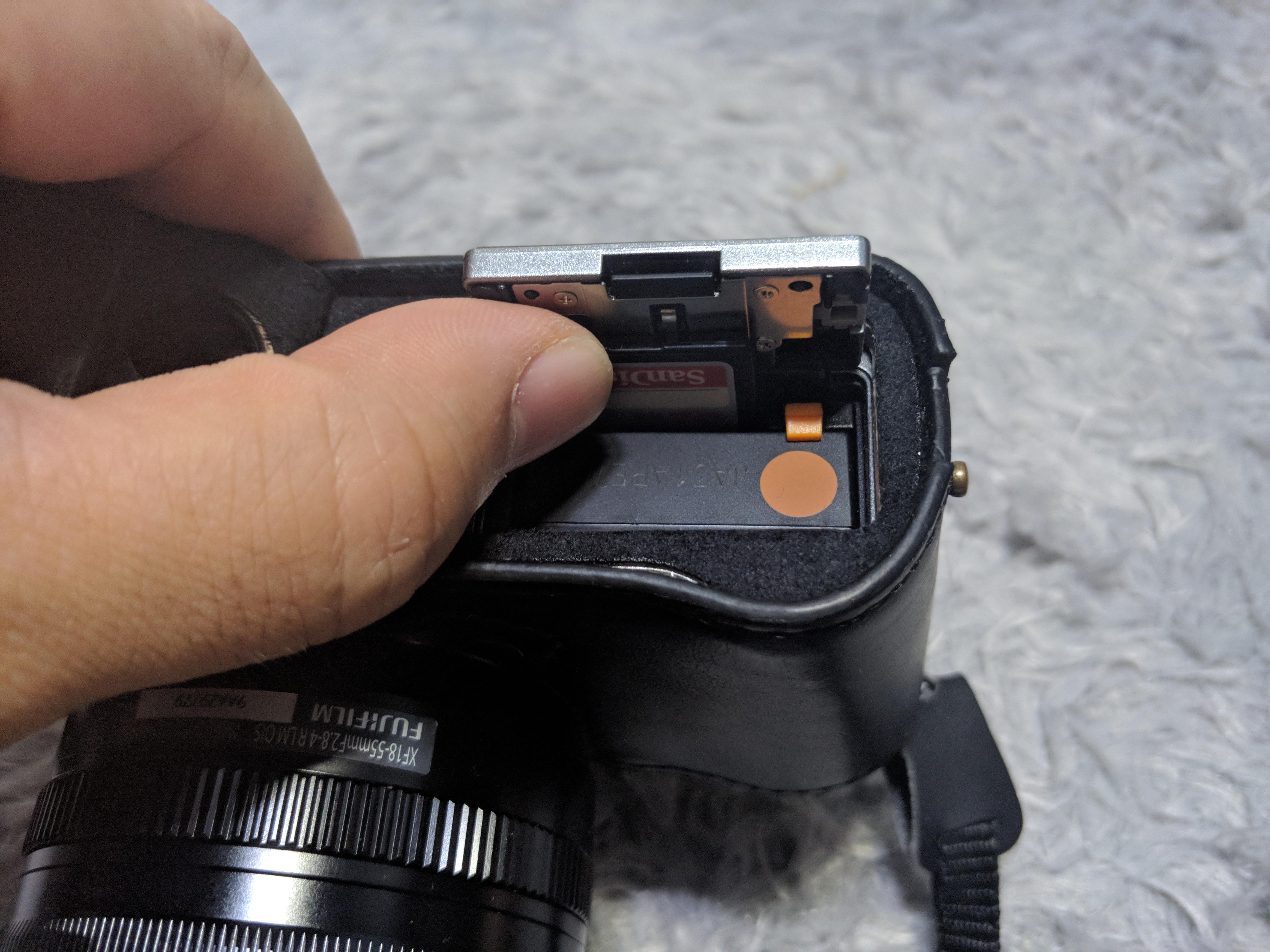 그 다음으로 궁금했던 부분은 하단의 베터리 교체되는 부분이 얼마나 자연스럽게 될지였습니다. 아래와 같이 베터리 메모리 교체하는데 크게 불편하진 않게 되어있네요. 렌즈도 18-55로 교체해서 확인해봤습니다.