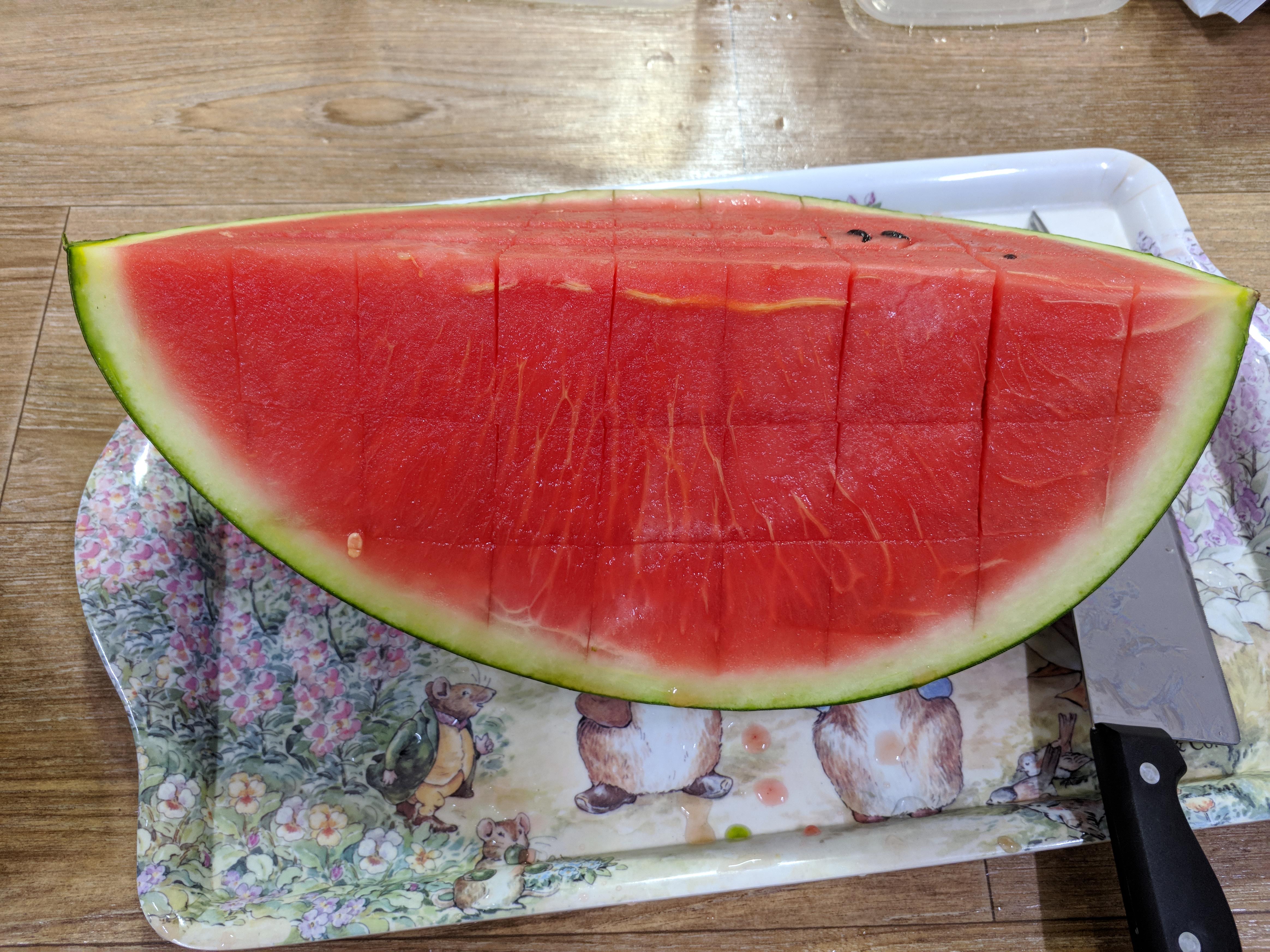 1. 수박을 일단 반으로 자릅니다.