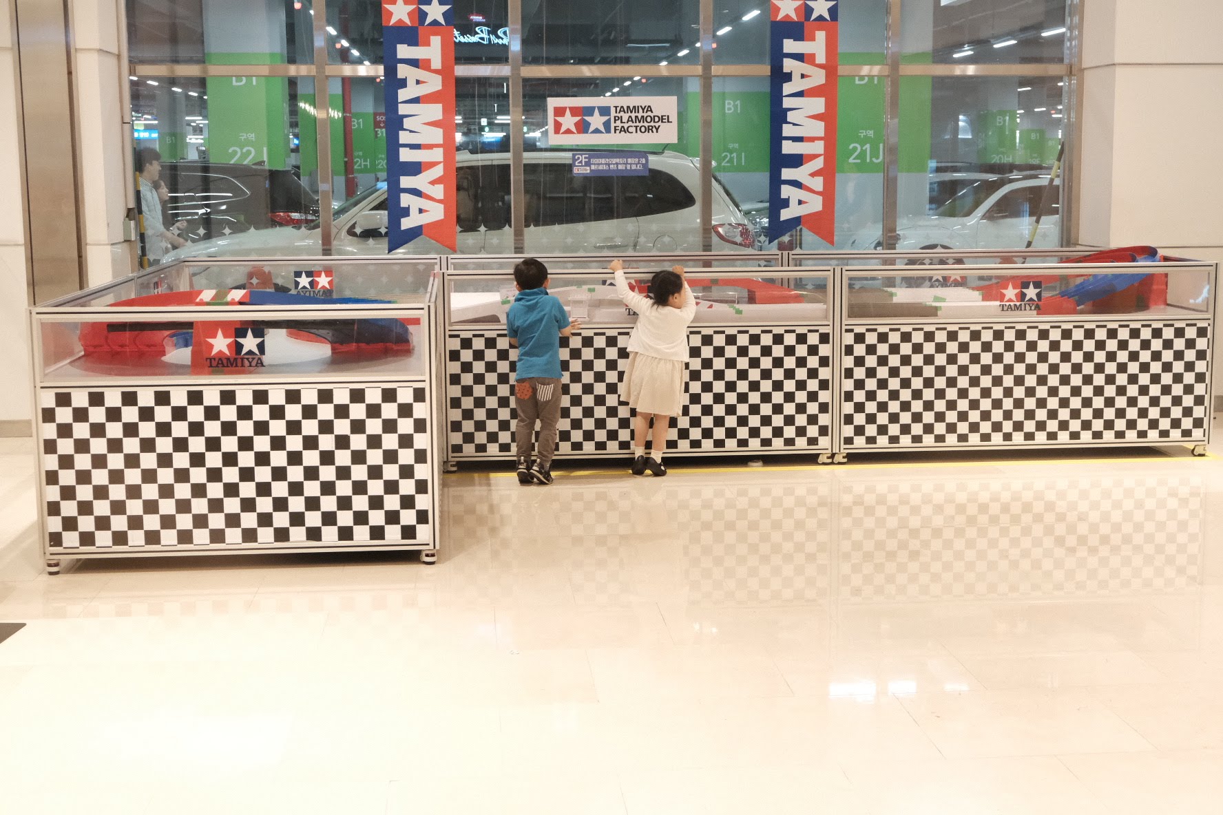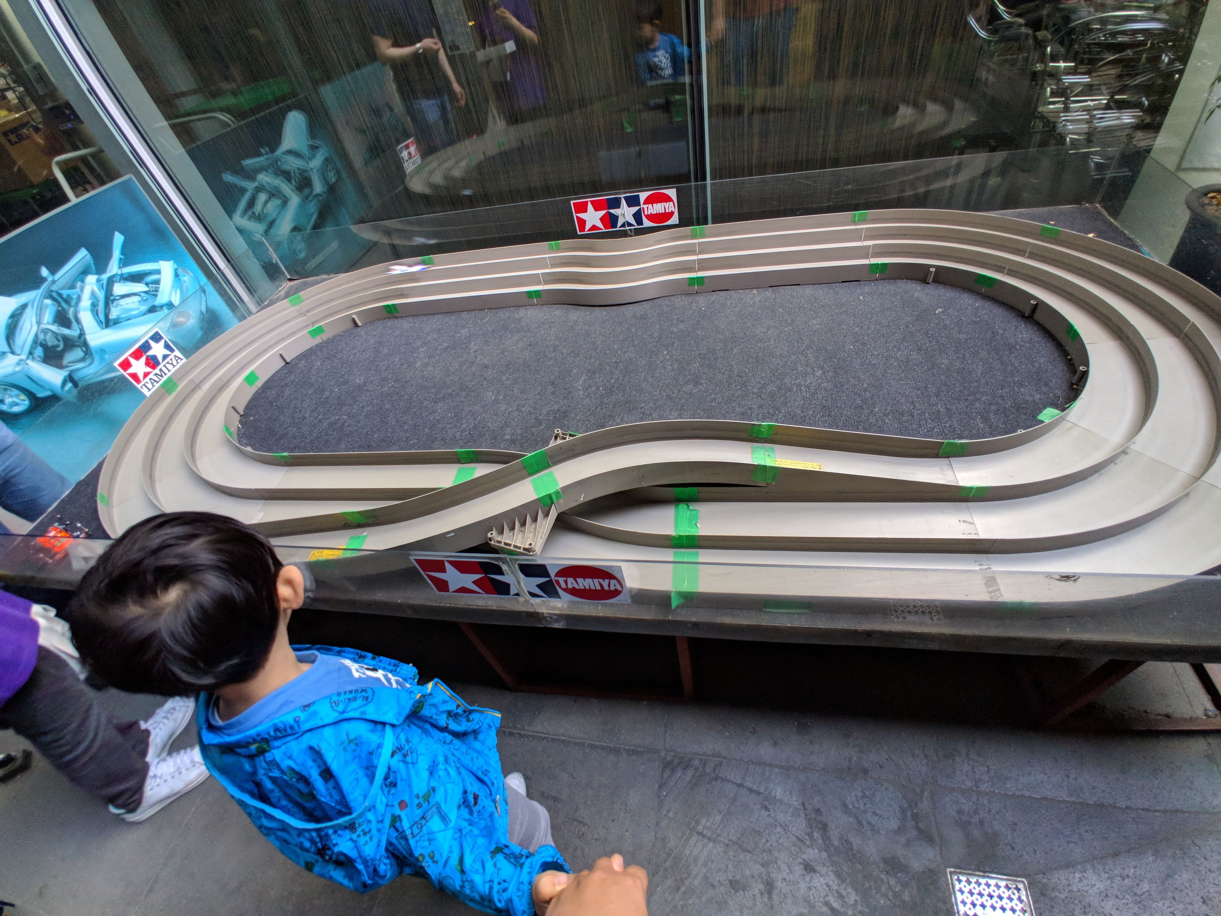 지지난달에 하남 스타필드에 갔다가 2층에 타미야 매장을 발견하고는 아들을 데리고 구경을 했습니다. 기대했던 것과 달리 그다지 즐거워 하진 않더라고요 ㅠㅠ 그래서 그냥 포기(?)하고 나왔는데, 지하에서 트렉을 발견했습니다. 쌩쌩 달리는 차가 멋있어 보였는데 아빠 친구 딸과 둘이서 까치발 들고 구경하더라고요. 이때를 놓치지 않고 와이프에 세 한대 사주자고 꼬셔서 한대 구매했습니다.
