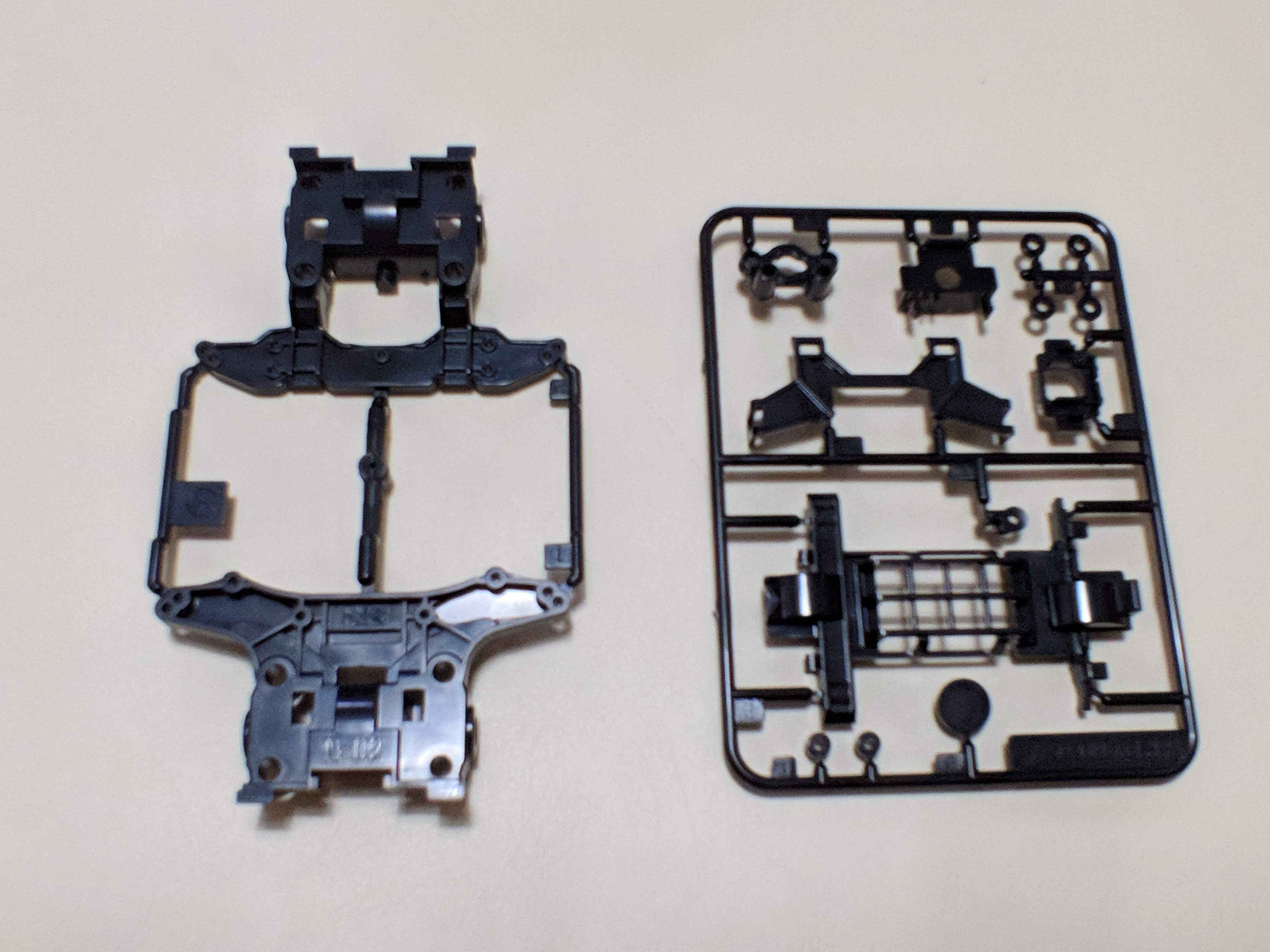 제일 변했다고 생각한 것은 모터. 제가 어릴땐, 모터가 한쪽 방향으로만 해서 차체 뒤쪽에 배치되어서 기어로 바로 바퀴로 결합되고, 그 바퀴 축에 다시 기어가 연결돼서 앞바퀴를 돌렸는데, 이건 모터가 차체 가운데 배치되고, 앞 뒤축과 모두 기어로 결합되는 구조였어요. 이게 더 효율적일 수도 있겠다는 생각이 드네요. 그리고 바뀐 것 중에 하나가 구리스(?)인데 그땐 조그만 금속 튜브 같은데 들어 있었는데, 가끔 뒤로 새서 엉망이 되는 일도 있었는데 이젠 그럴 일은 없겠네요.