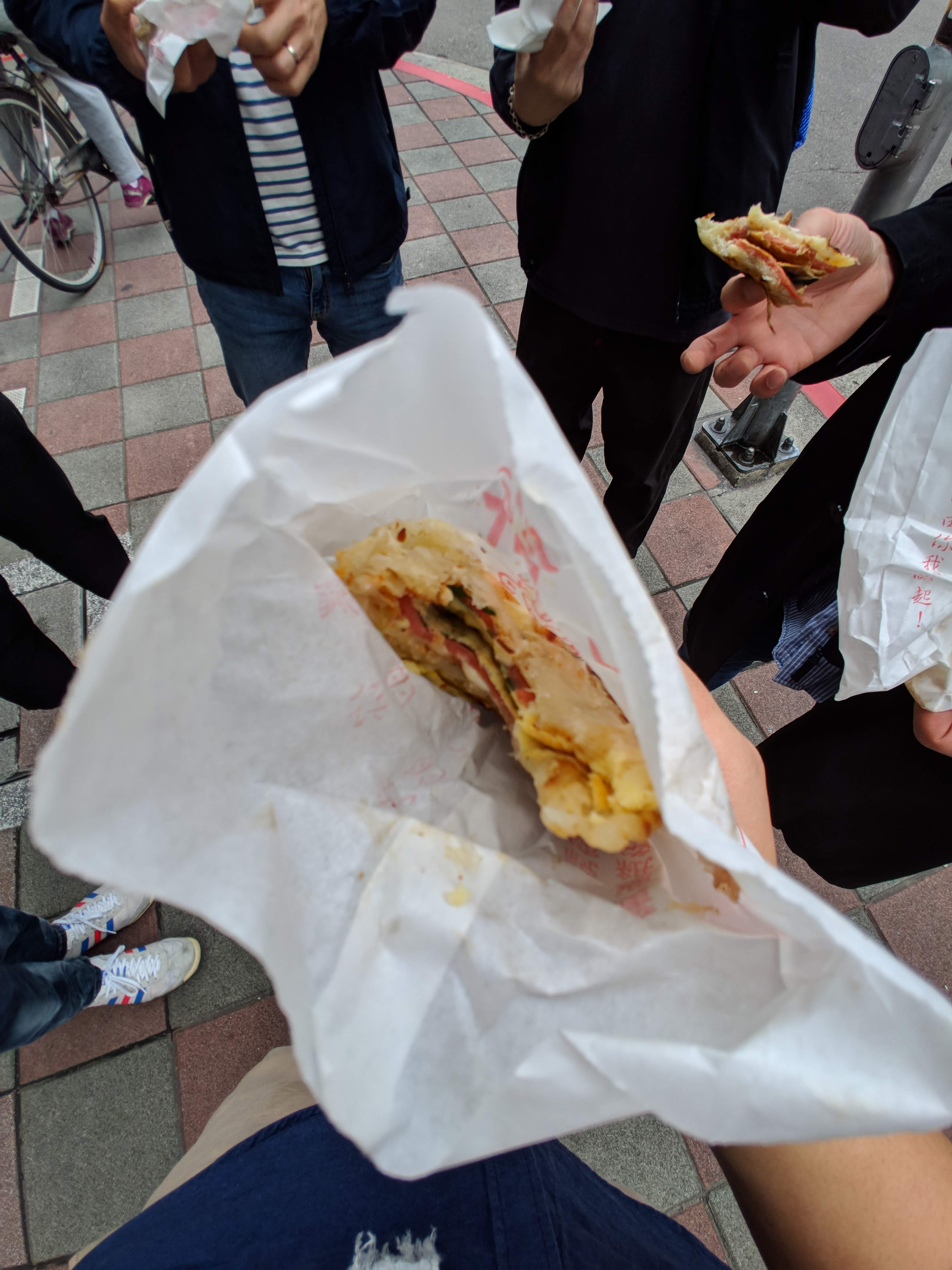 일단 조금 전에 산 토스트 하나씩 나눠드리고 먹었습니다.