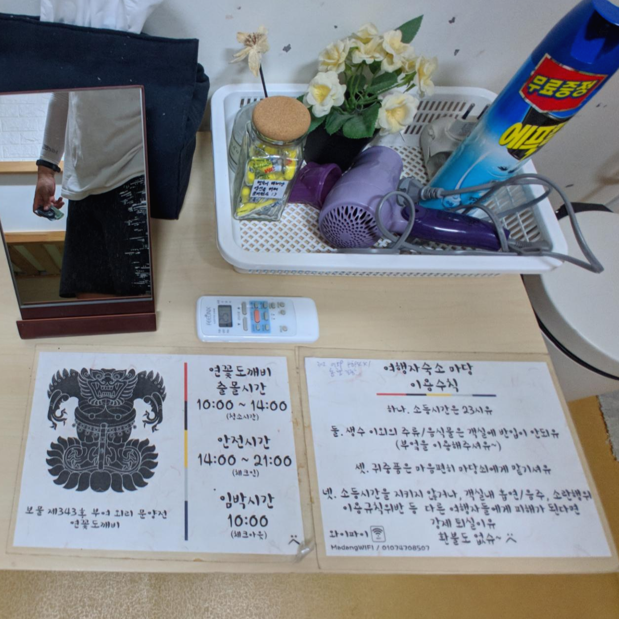 테이블에 간단한 이용 수칙들이 적혀 있습니다.