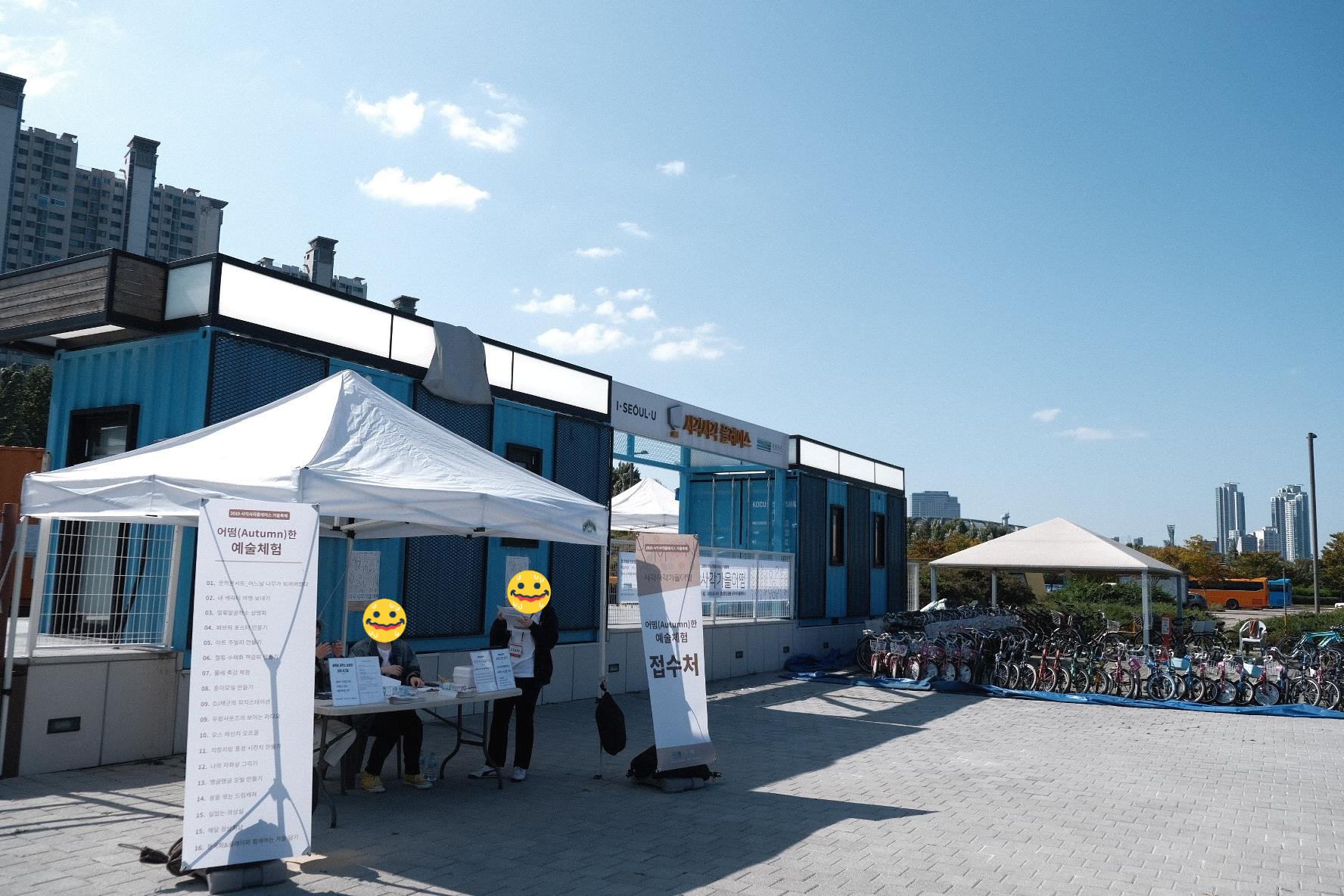 예술 체험은 앞에 접수처에서 선착순으로 접수를 받았는데, 저희가 도착했을땐 아직 접수 전이라고 접수를 안받아주시더라구요. 1시에 가니 이미 줄이 길게 섰었어요