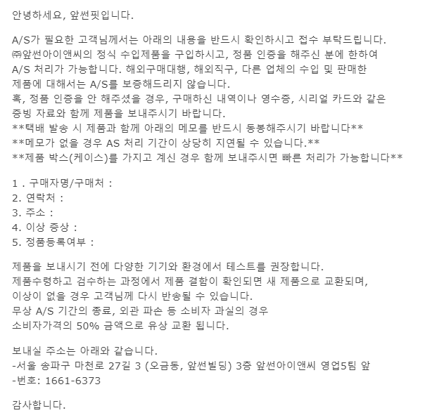 그래서 메일을 먼저 AS 문의하였더니, 아래와 같이 메일이 왔어요.