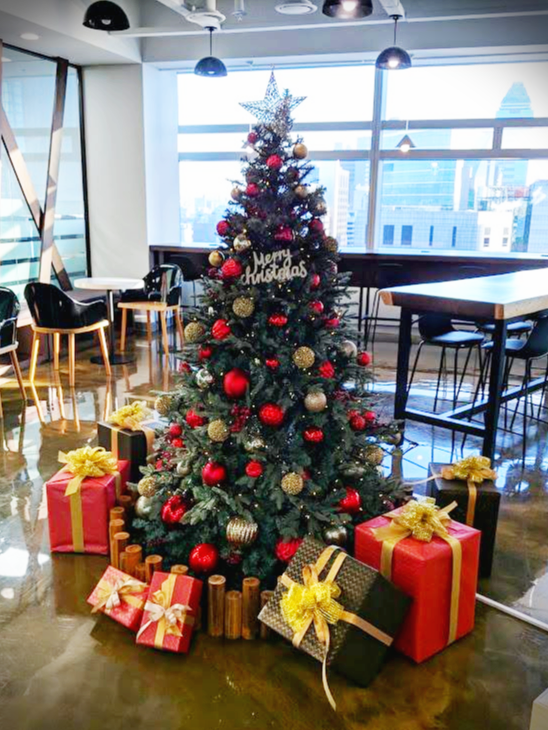 저희 회사 로비에도 크리스마스 트리를 설치했네요.