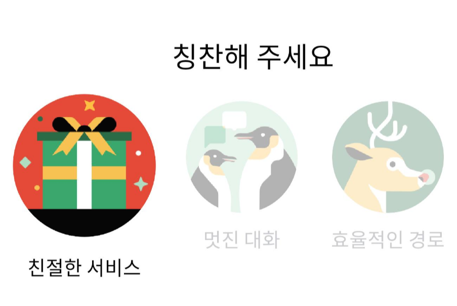 택시를 내리고 나면 탑승했던 기사님에 대한 평가를 할수 있는데, 위에 9가지 이모티콘을 선택하고 메세지도 남길 수 있었어요.