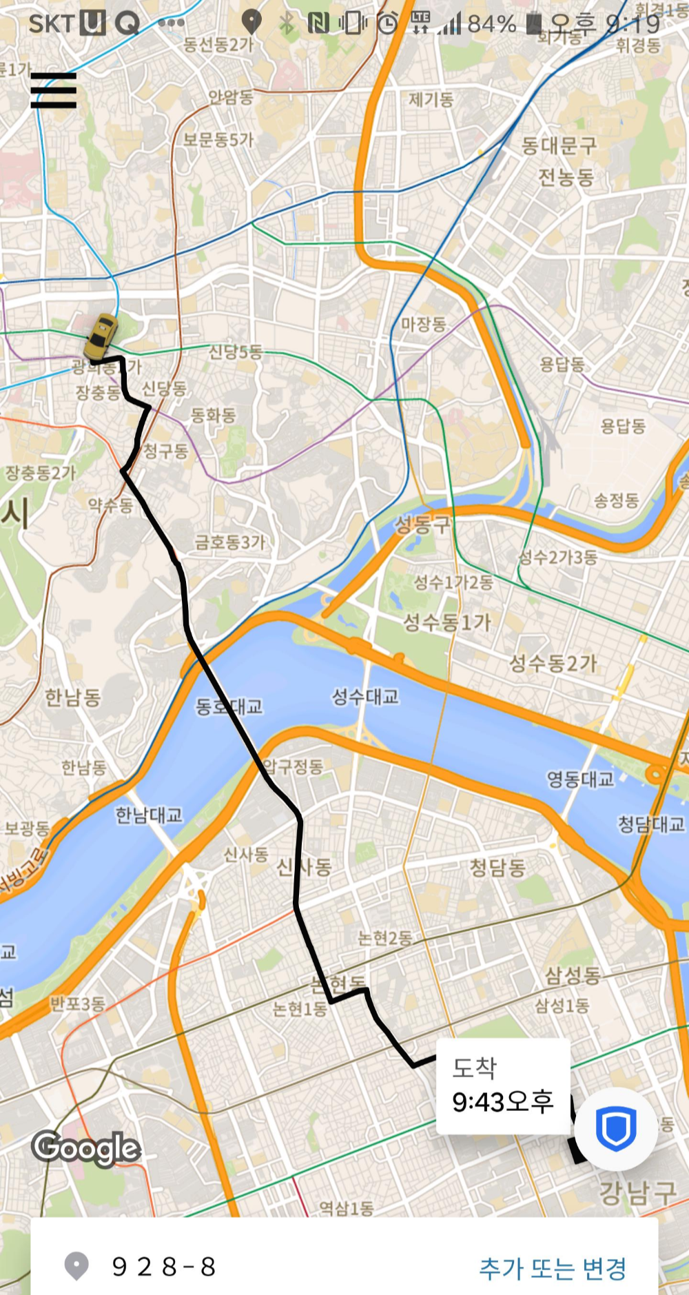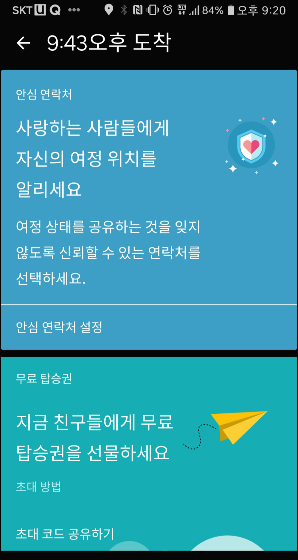 택시를 탄 후에 자신의 위치 및 여정을 공유할 수 있었어요.