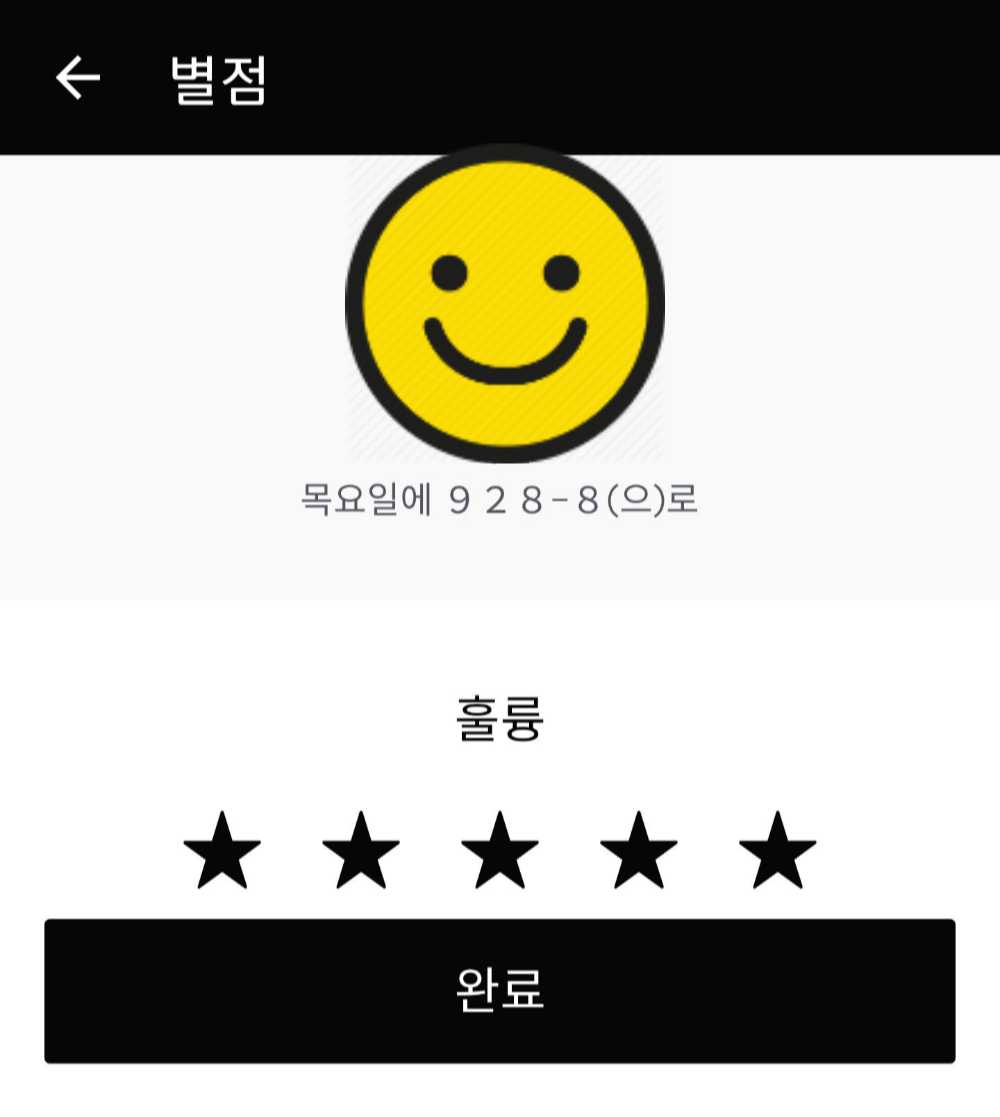 기사님께 5별 드렸어요. 기사님 얼굴 지켜드림 ㅎ