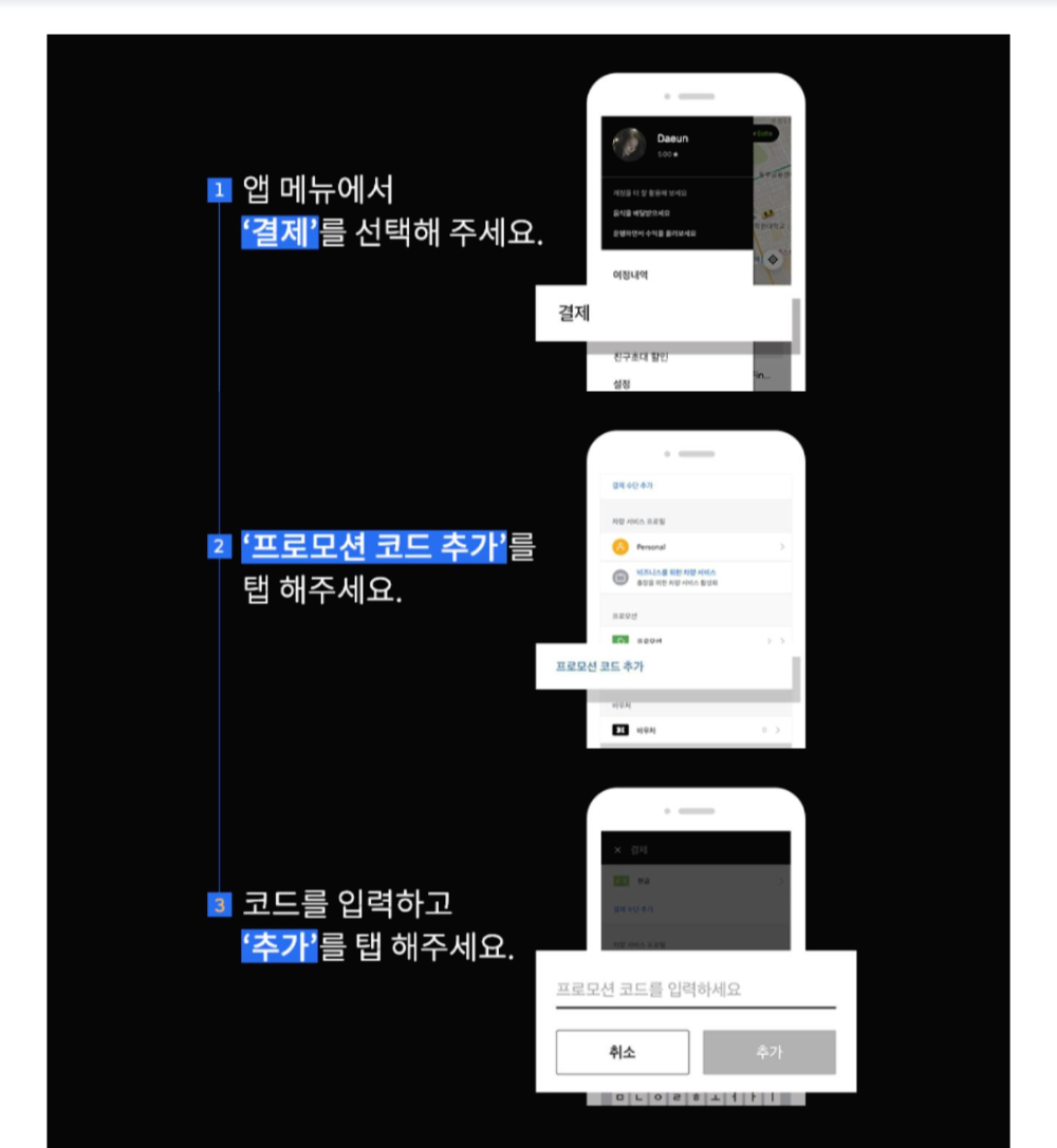 그런 이유가 우버 같은 경우엔 어디로 가시는지가 안나온다고 하더라구요 (역시 대인배 기사님!!!)