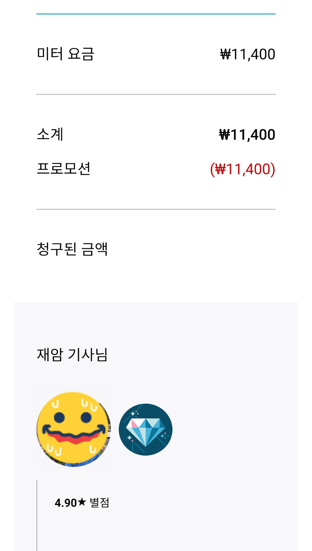 그러면 쿠폰금액 제외하고 카드나 현금으로 기사님께 결제하면 됩니다.