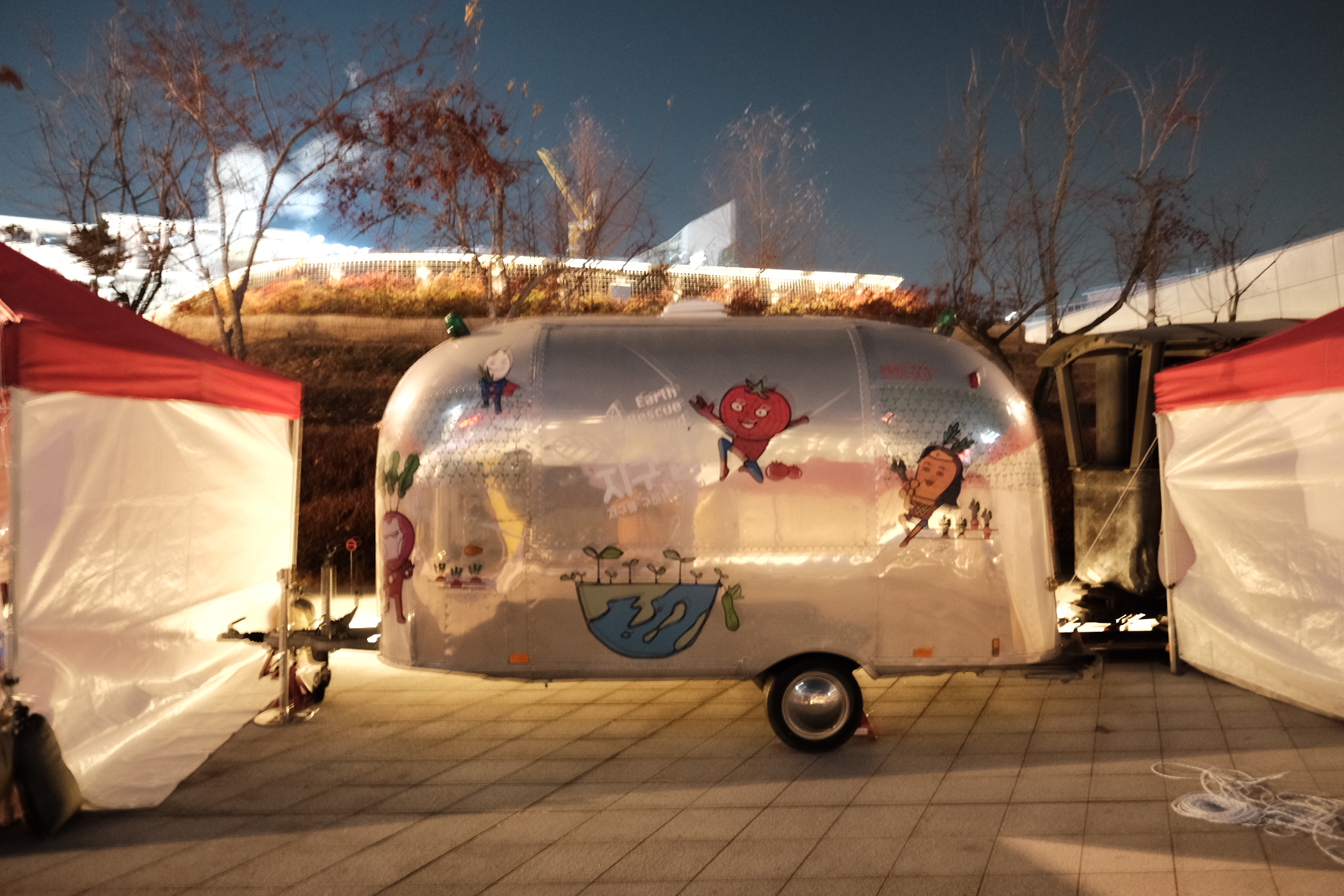 켄테이너 건물에 시트작업하시는 아저씨들, 각종 부스 꾸미는 사람들로 분주해 보였어요.