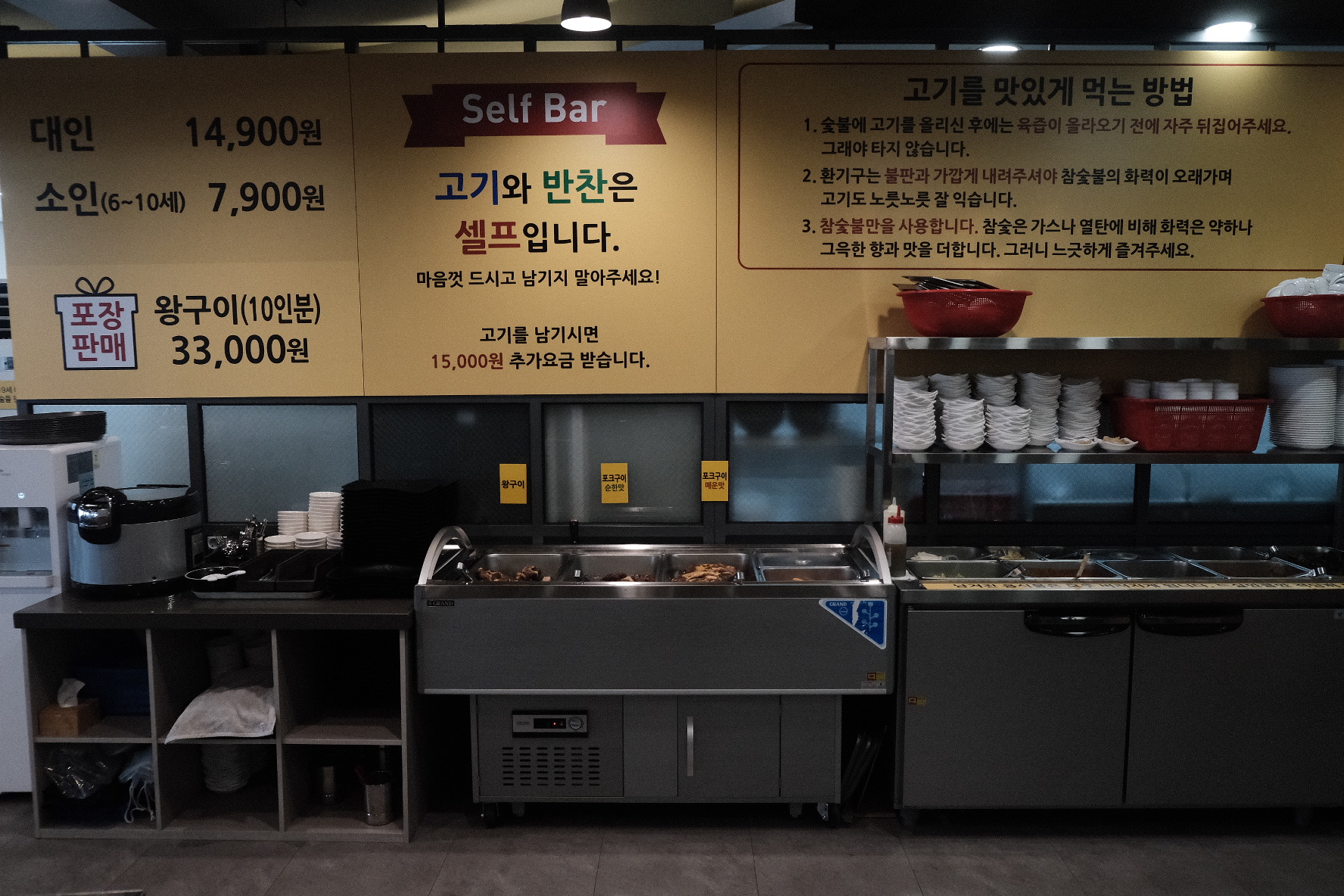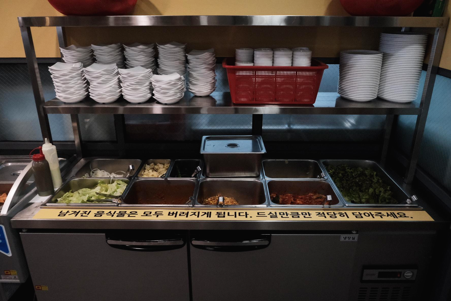 모든 기본 반찬, 고기 등을 셀프로 다 서빙해야 했어요.