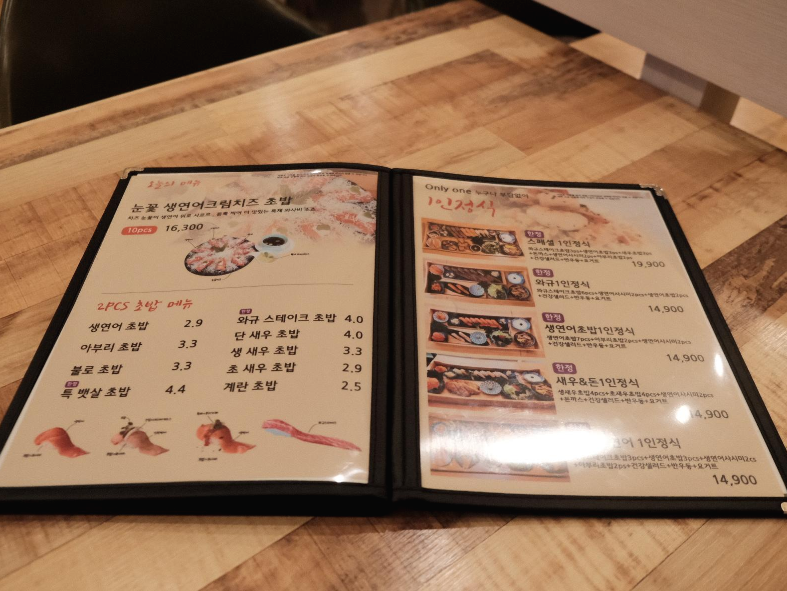 저희는 생연어 샐러드, 스페셜 1인 정식, 연어12pcs를 주문해서 먹었어요 :)