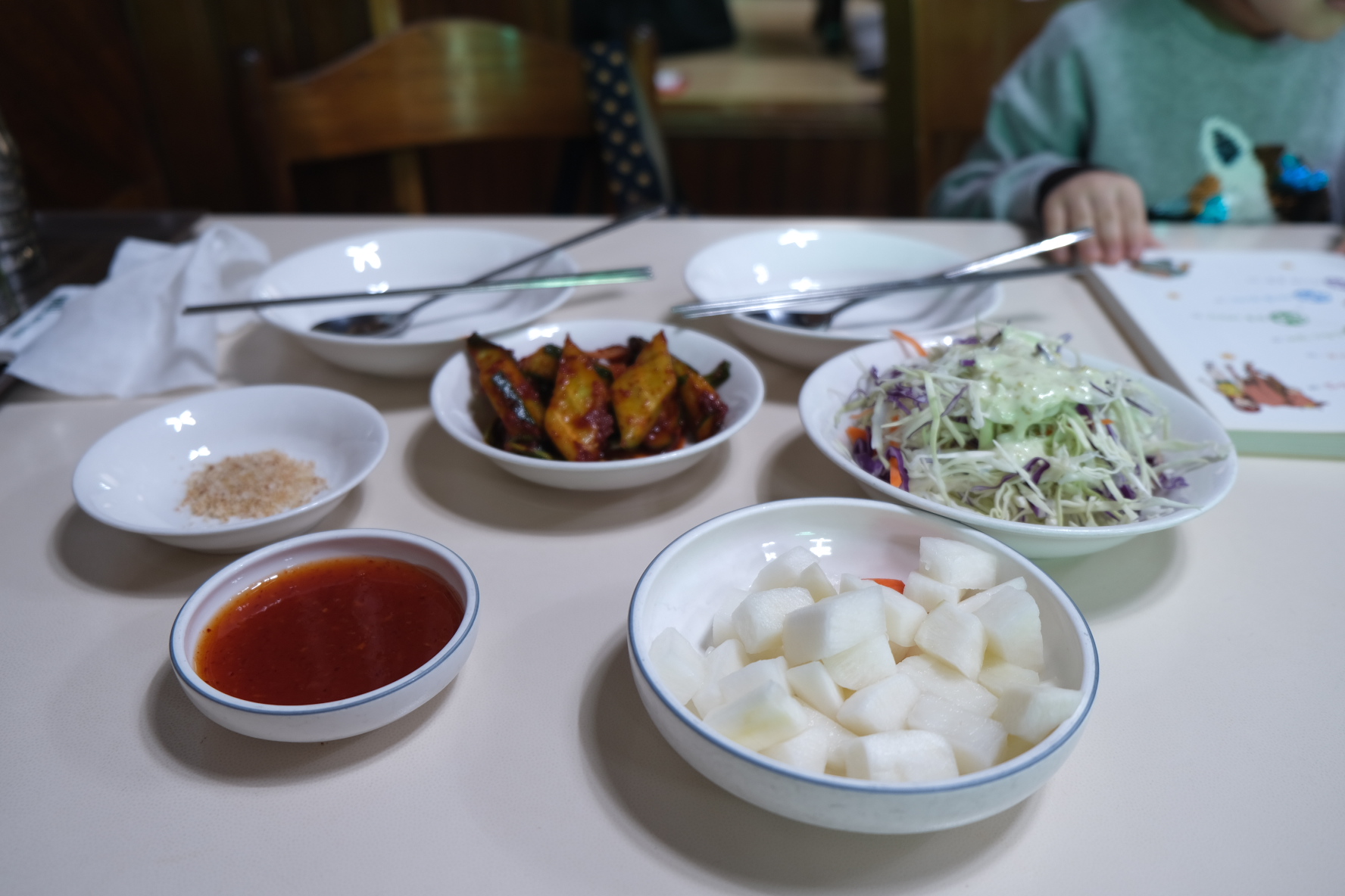 기본 반찬 세팅된 사진 보여드려요. 셔터스피스가 느려서 플리커 현상이 있네요 ㅠ 이해해 주세요