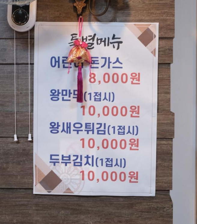 특별 메뉴에 왠 돈까스나 새우튀김이 있을까 생각했는데, 기존에 메인요리에 본인도 뭔가 부족함을 느끼셔서 다른 메뉴를 추가하신게 아닐까 생각이 들었어요.