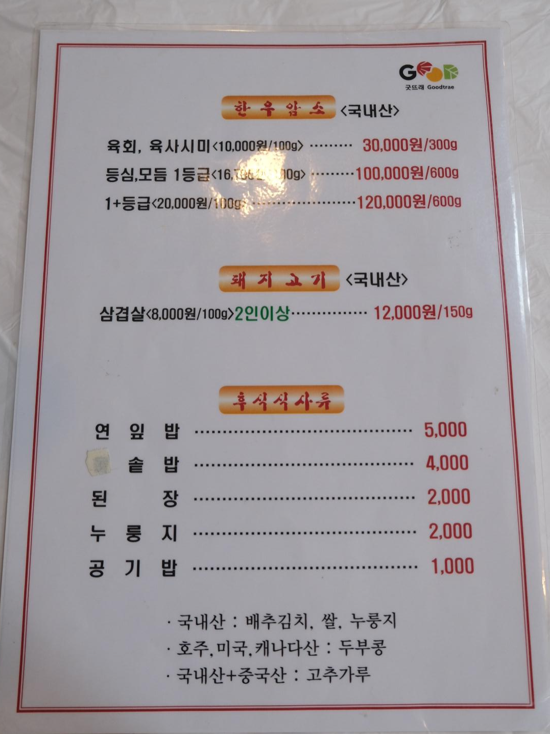 메뉴랑 가격들은 참고하세요