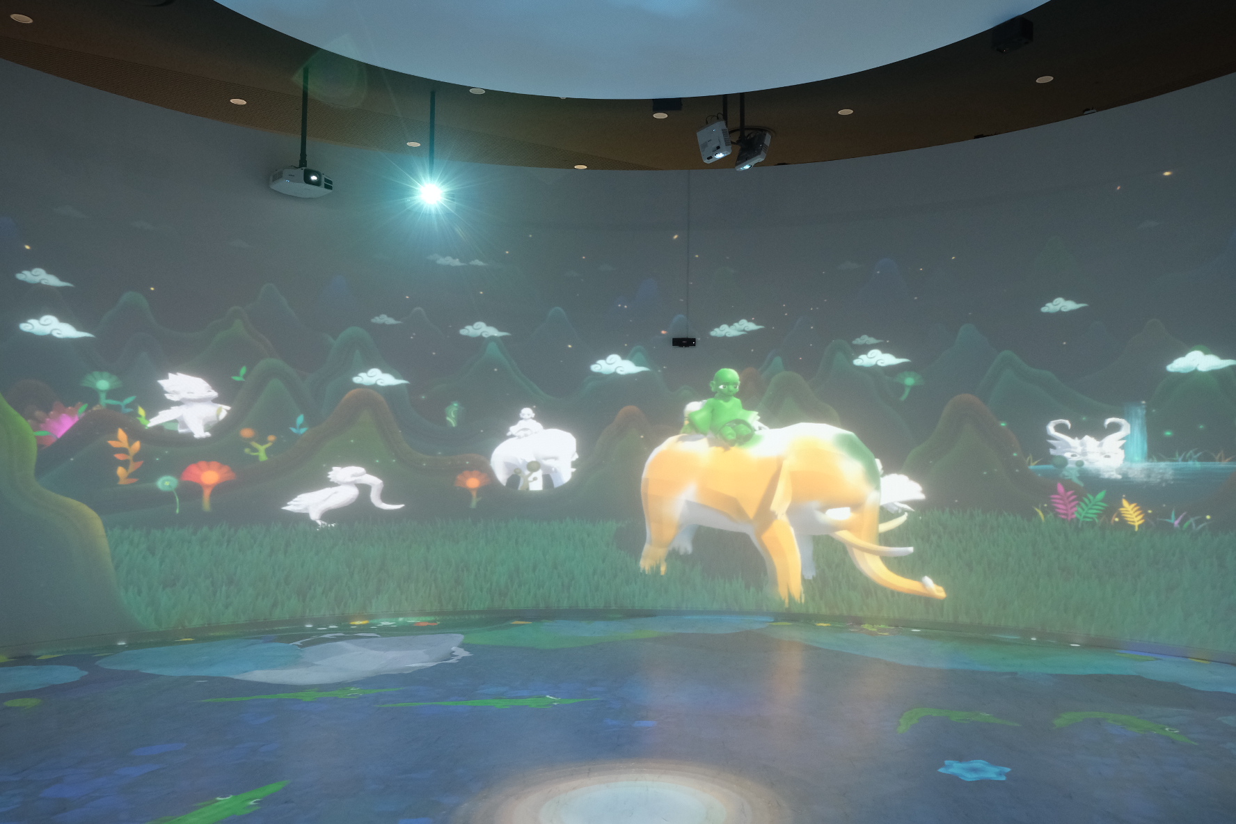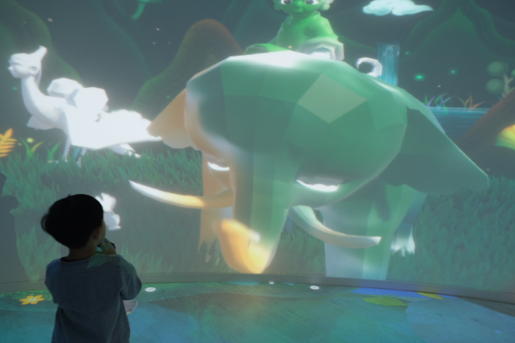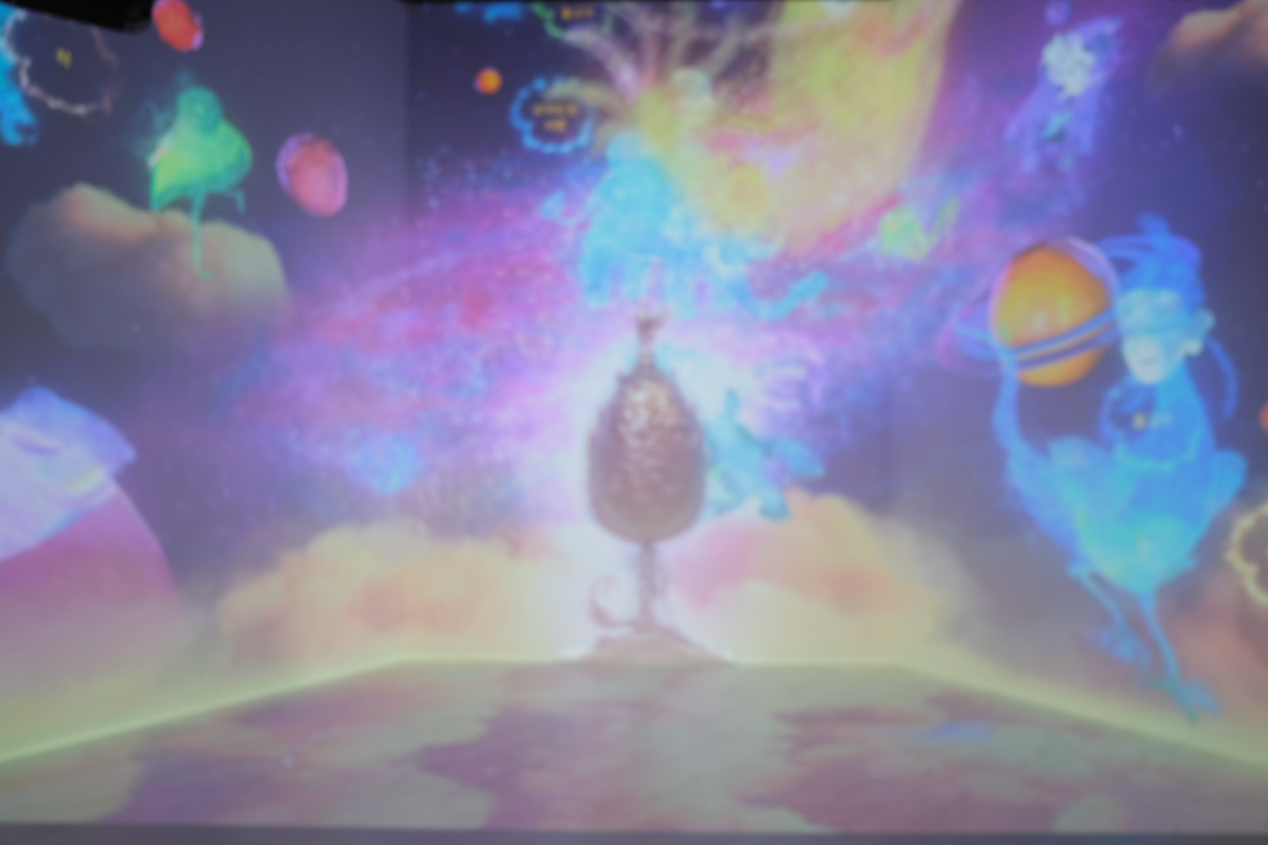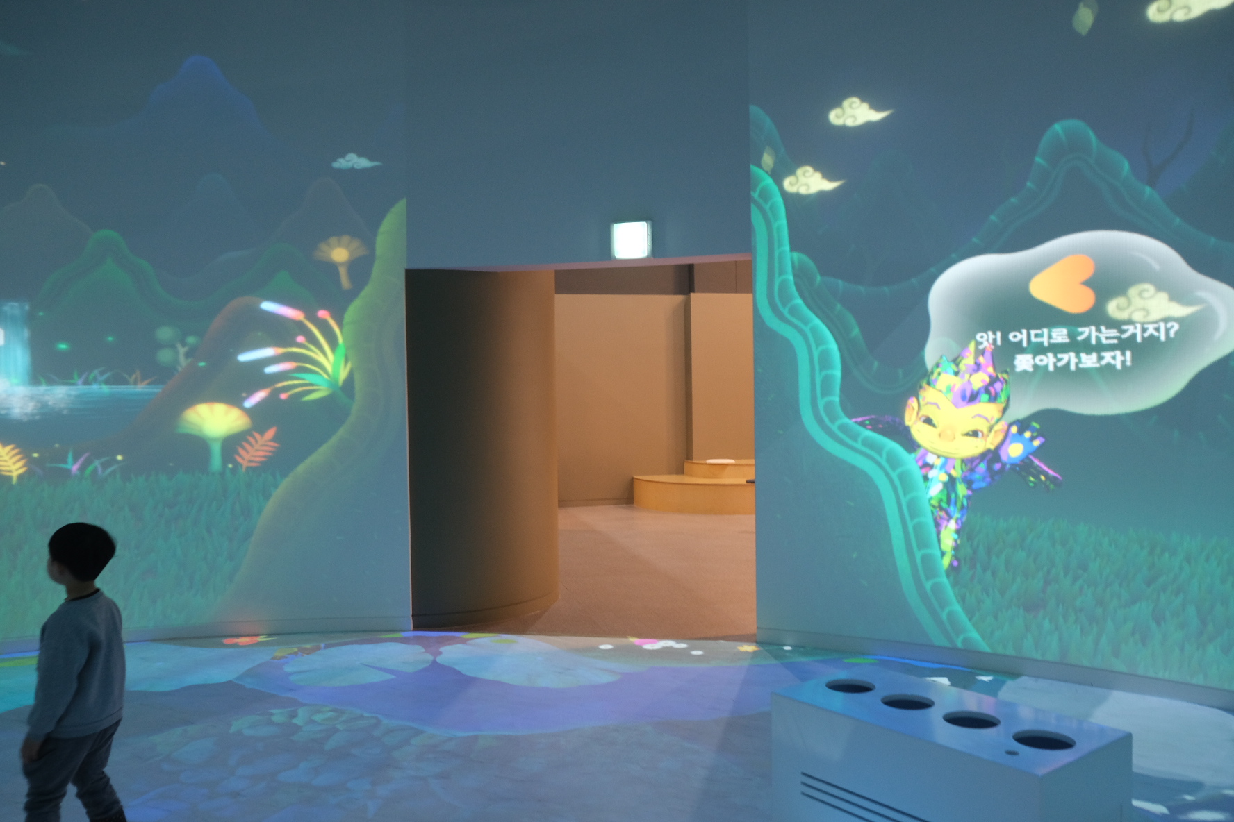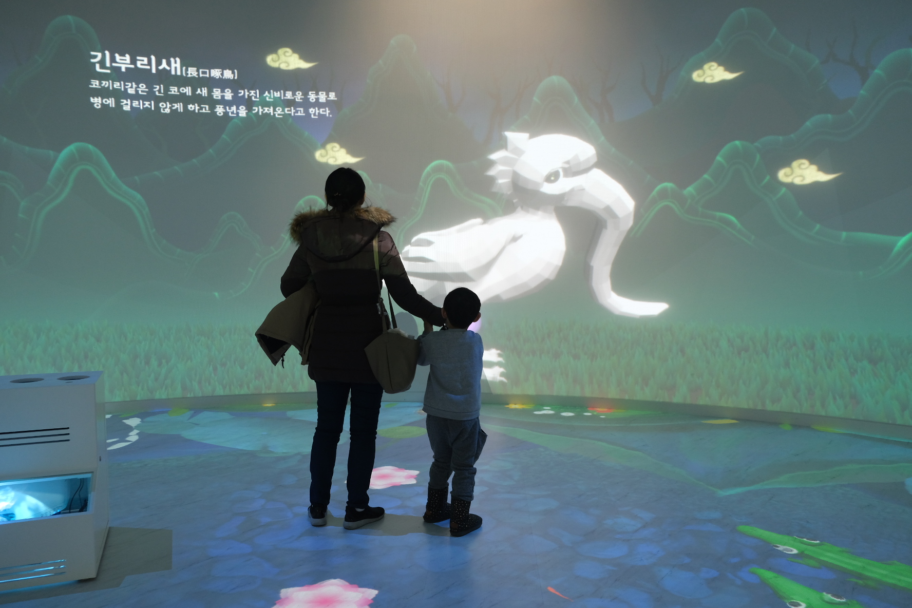 무슨 말이냐면, 방에 들어가면, 금동 대향로에 나오는 동물이 벽에 움직이며 등장합니다.