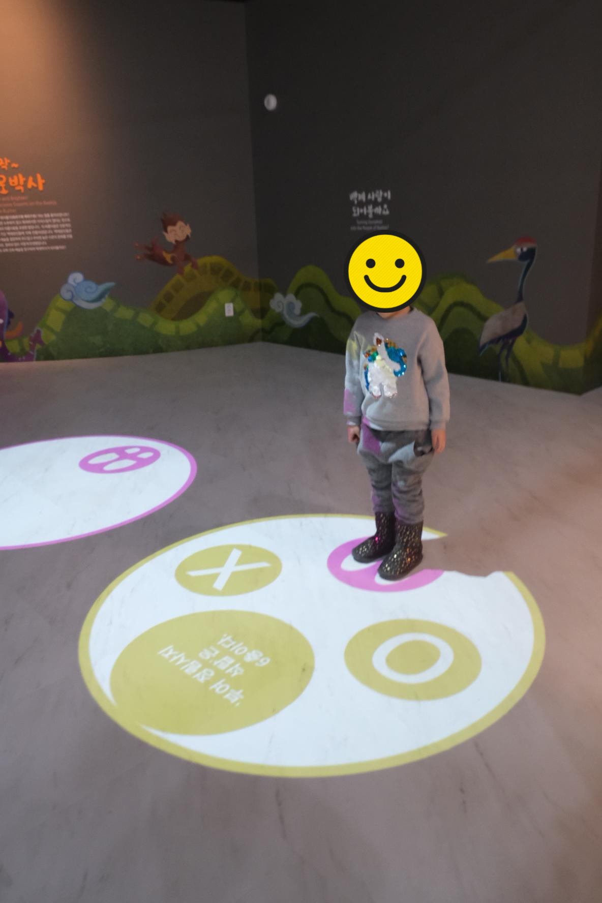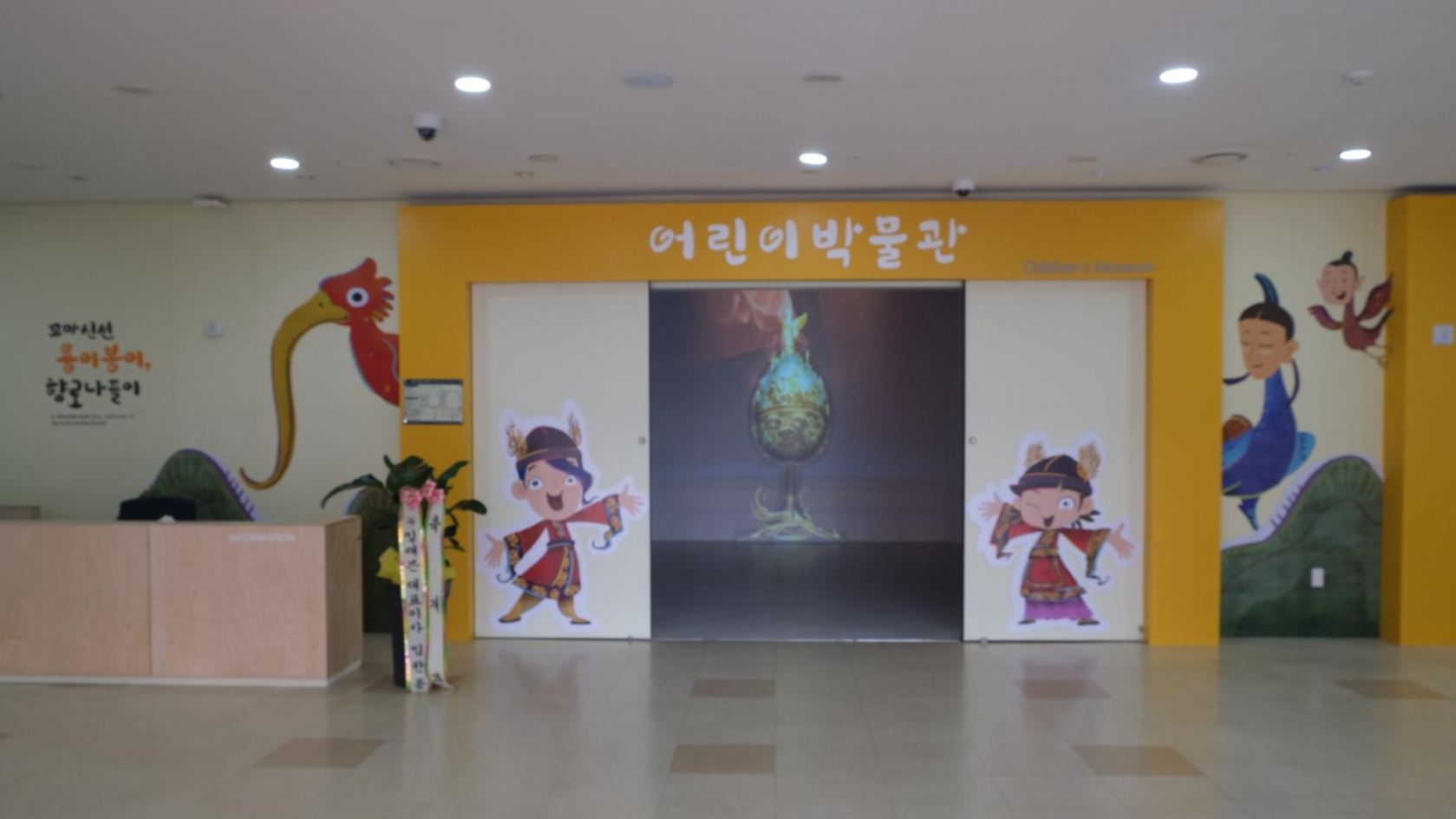 평창올림픽때 세계의 관심을 가져갔던 인면조가 벽면에 보이네요. 그리고 저 안쪽에 꺼다란 금동대향로가 보이네요 :)