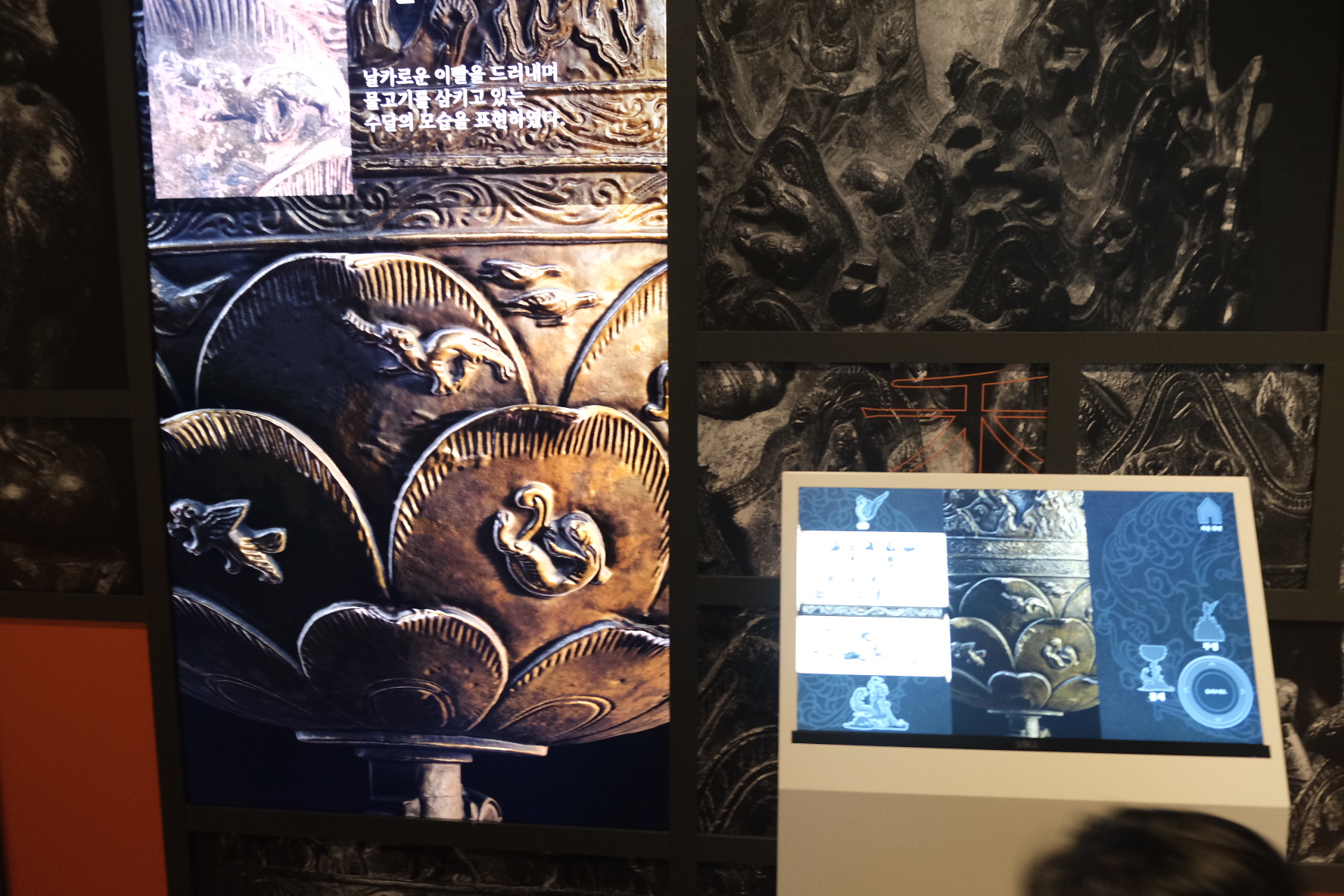 밖에 나오니, 스크린으로 금동대향로의 각 부분을 확대해서 보는 것도 있었어요 :)