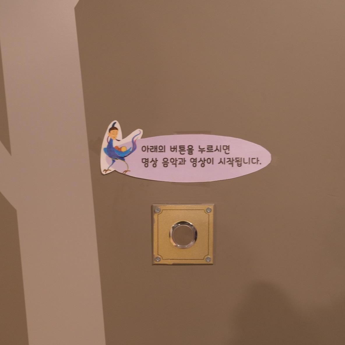벽에 있는 버튼을 누르면 명상음악과 금동대향로 사진이 나왔어요 ㅋ