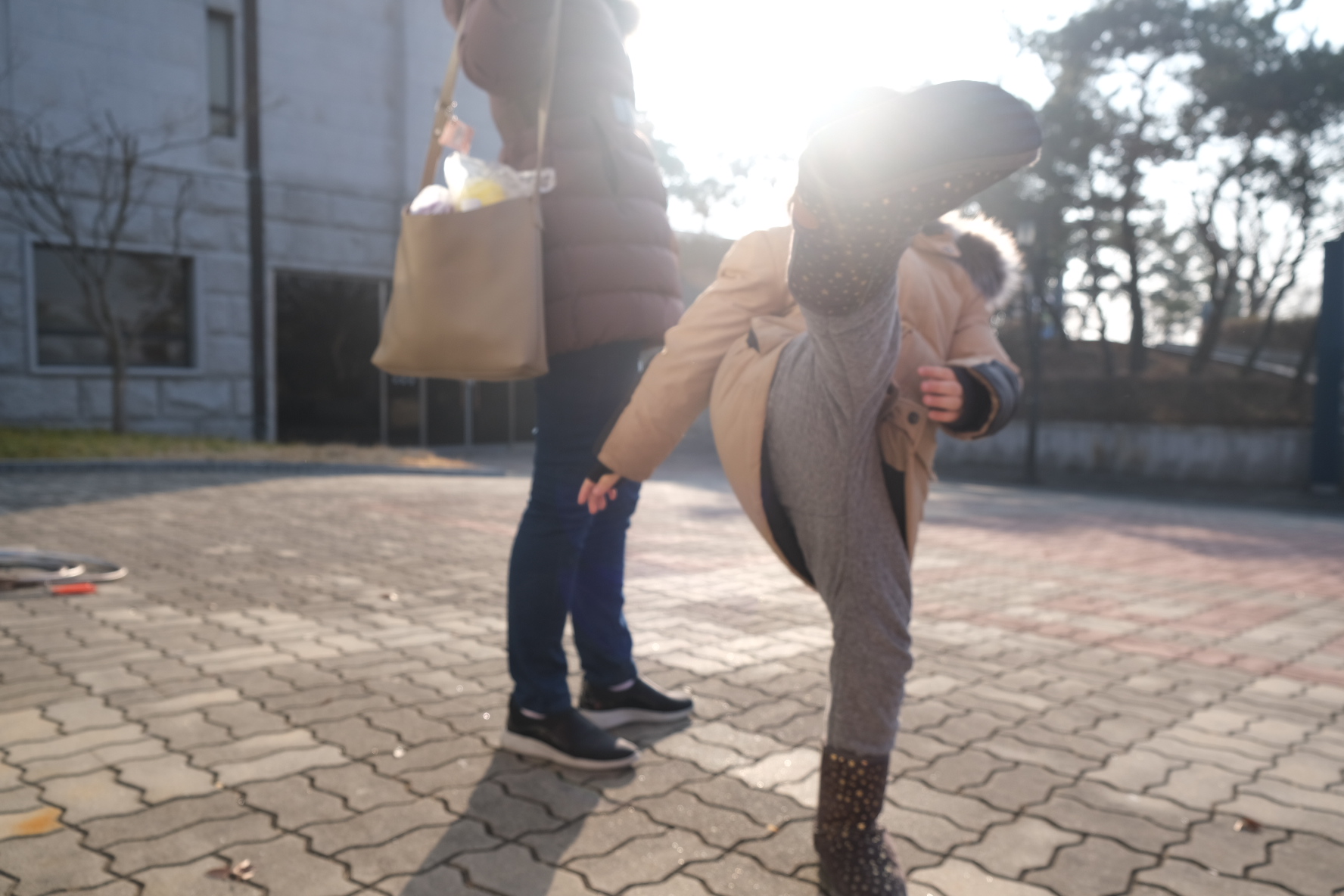 아들은 제기차기 어린이집에서 해봤다며 잘할것처럼 다리를 쭉 올려차보지만, 제기가 발에 와서 부딪쳐 주질 않네요 ㅎ