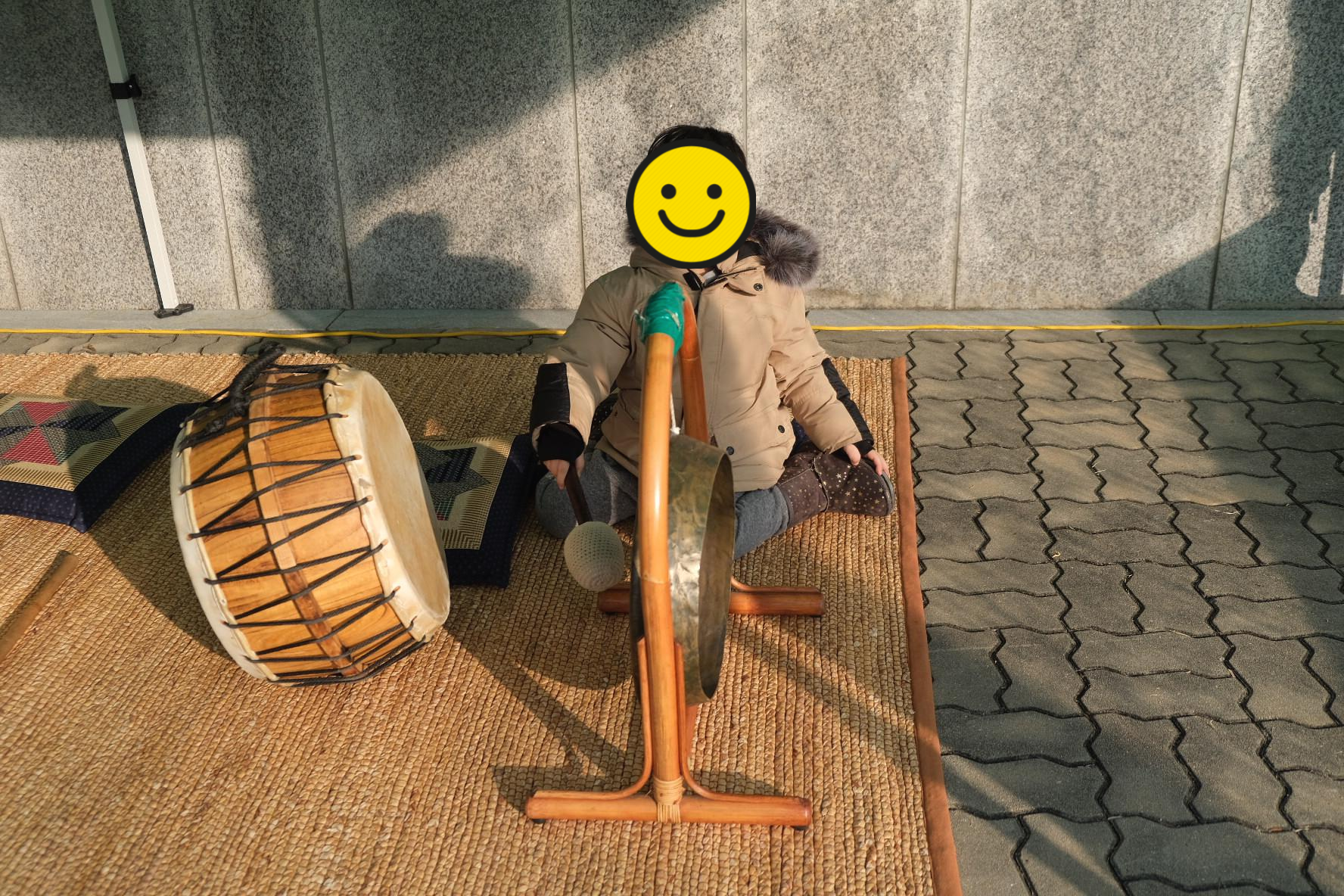 그리고 윷놀이 옆에 사물놀이가 놓여져 있었어요.