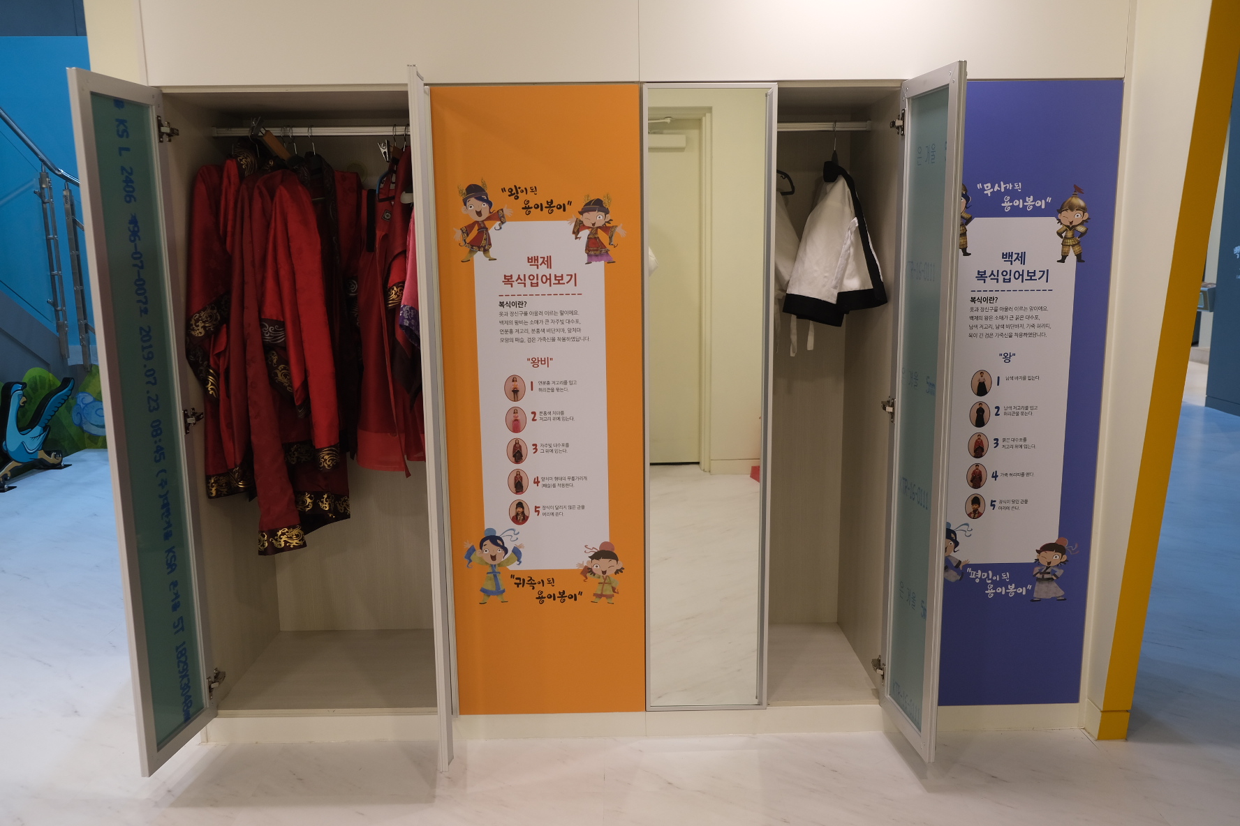그 옆으로는 백제 시대의 옷을 입어 볼수 있는 곳이었어요.