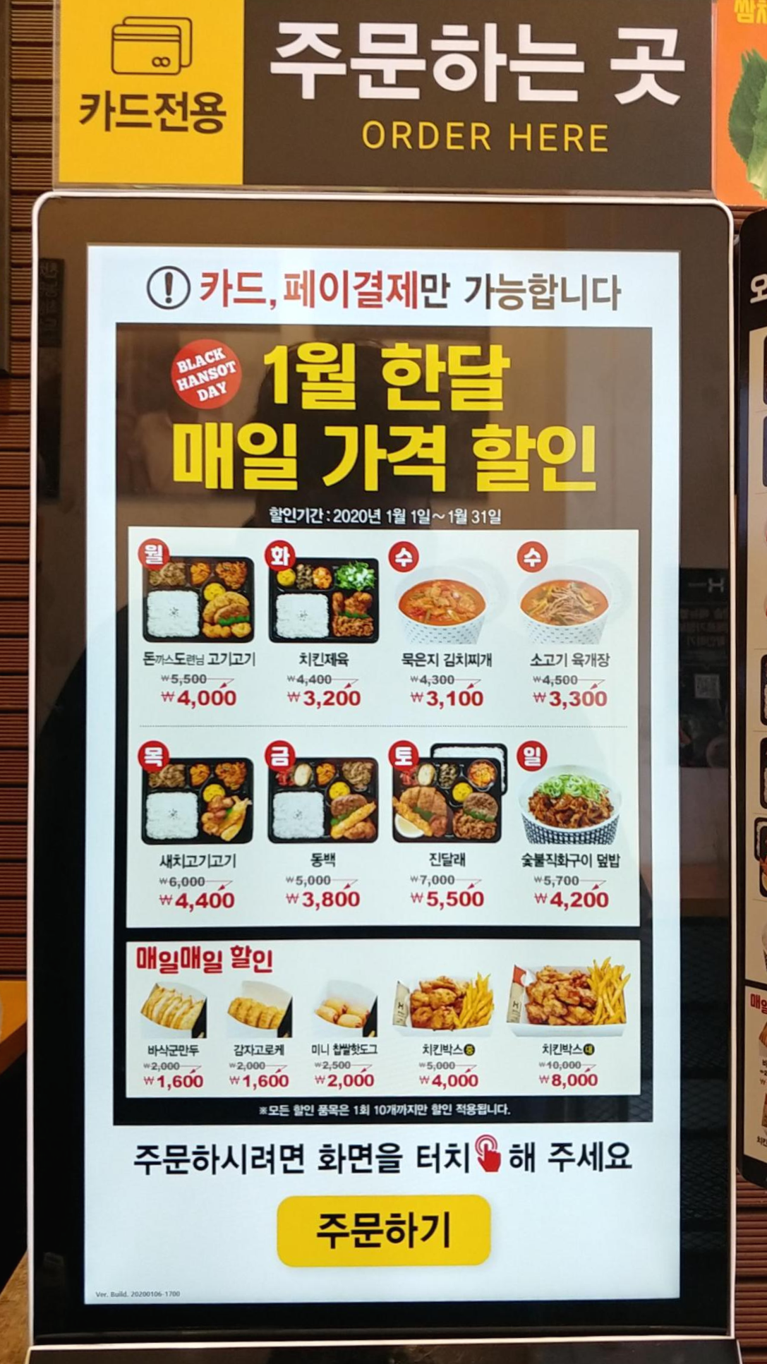 이날(1/22)은 회사 근처에 있는 한솥 도시락 매장에서 도시락을 샀어요 :)