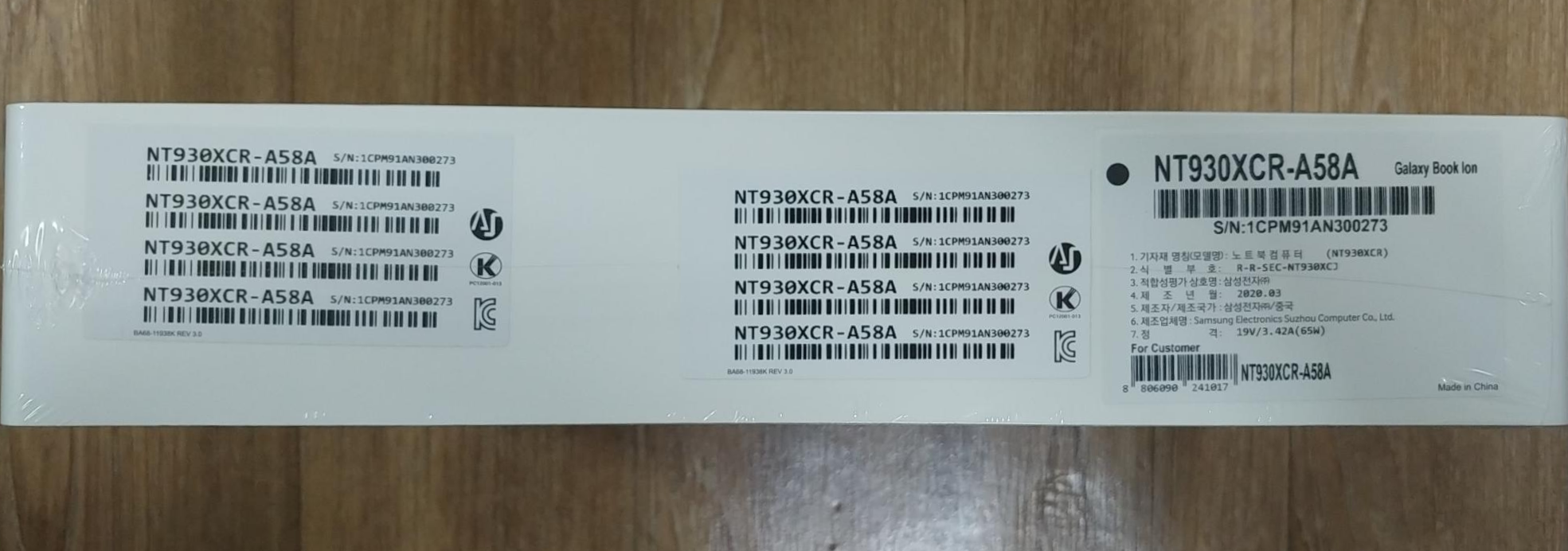 NT930XCR-A58A, 2020년 3월 제조 제품이네요! 완전 뜨끈뜨끈한 제품이네요 :)