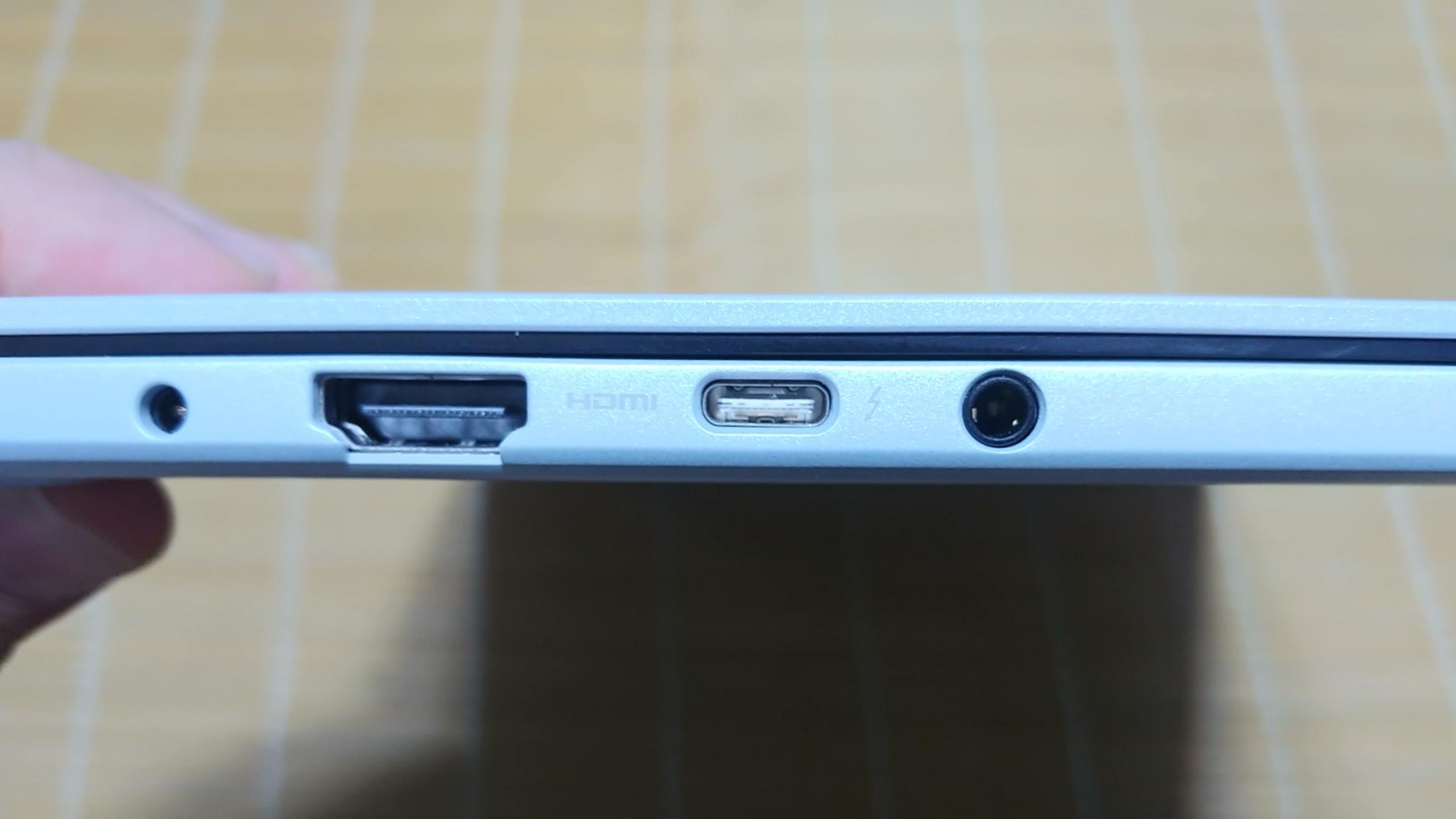 왼쪽에는 전원 어뎁터, HDMI, Type-C, 이어폰 꼽는 곳이 있었어요.