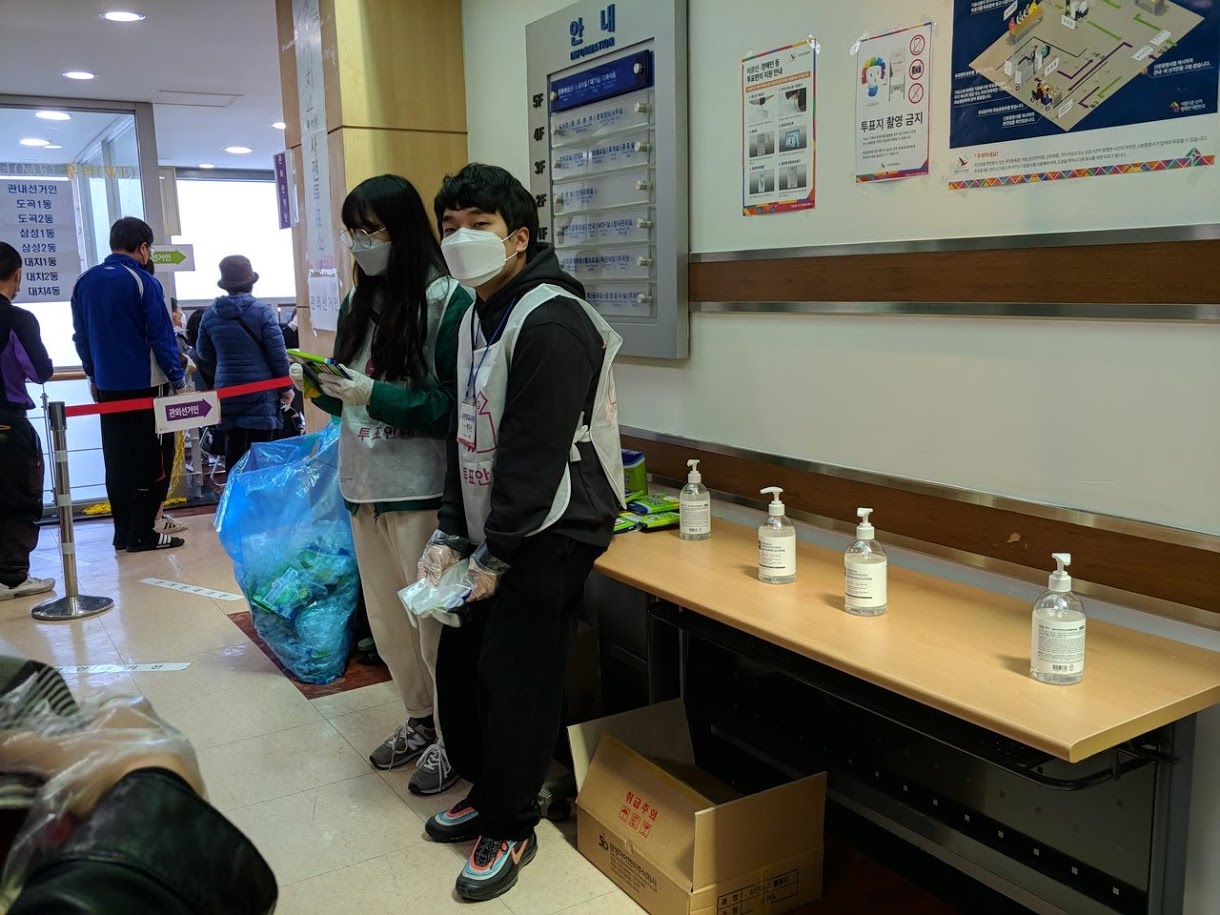 한 가지 제안을 한다면, 투표소 입구에서 10명이면 10명 끊어서 실내로 들여보내는 게 어떨까 싶어요.