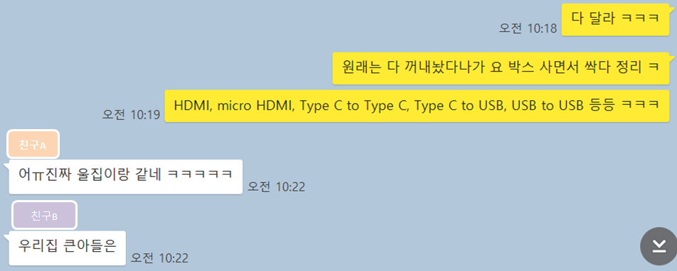 다른 제품과 호환 되는 것도 있지만, 그렇다고 당장 안쓴다고 버리기도 그렇고 해서 저는 원래는 틴케이스 안에 넣어뒀는데 꺼내쓸때 마다 찾기도 번거롭고 선이 꼬이고 해서 대안을 찾고 있었어요.