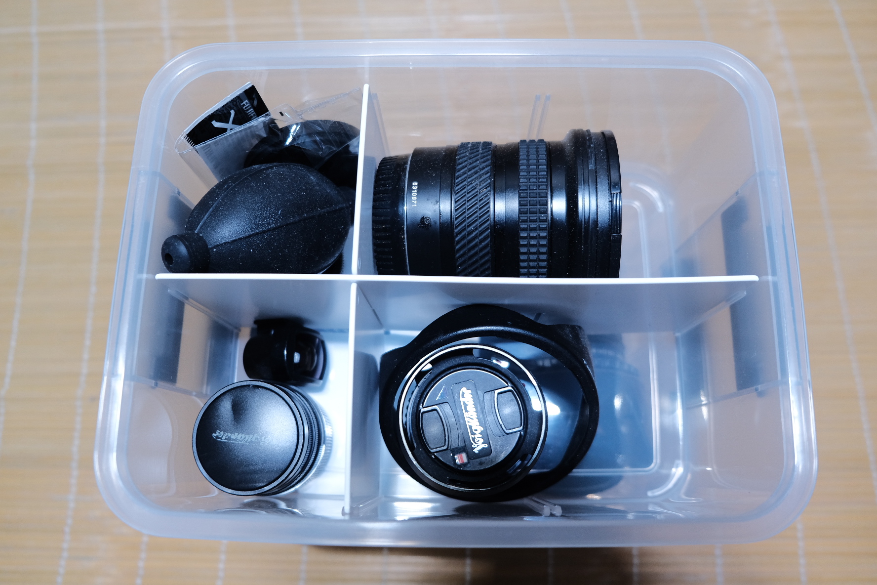 그리고 큰 사이즈박스(B)는 자주 안쓰는 카메라와 렌즈들을 넣어뒀어요.
