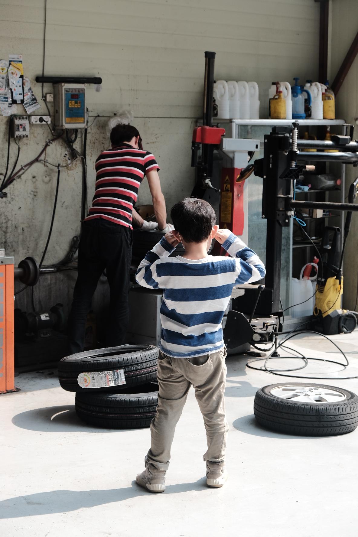 뭐 엔진 오일 갈고 타이어 가는게 특별한게 있겠느냐만, 아직까진 저희 아들에겐 그저 신기해 보이는 것이었나봅니다.