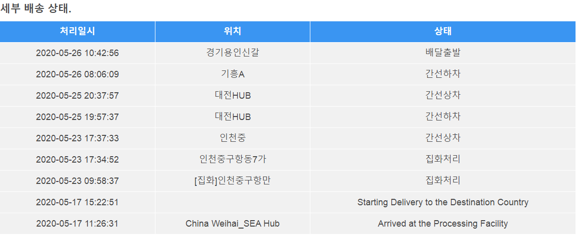 배송기간은 10일 걸렸어요. 조카들 주려고 이틀인가 뒤에 또 샀는데 동일한 23일에 한국 도착했더라구요. 산둥반도 위하이(위해)라는 도시에서 인천으로 오는 배로 배송해서 배송료를 싸게하는 구조인 것 같아요. 보통 이런 배는 일주일에 한번 정도 있으니 그 배 출항하는 요일을 잘 맞으면 더 빨리 아니면 더 늦게 도착하는 것 같네요.