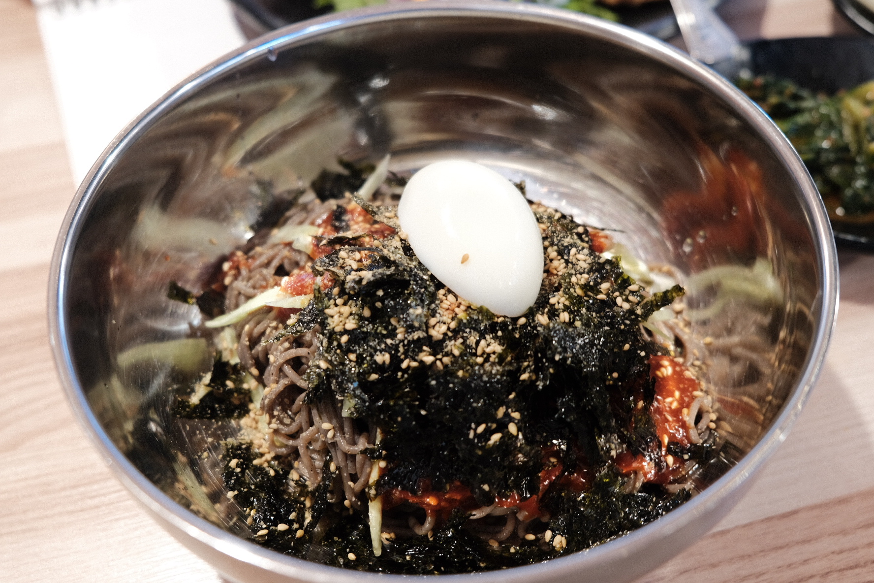 비빔은 딱 받아보니, 음 이거 양이 모자랄수도 있겠다 싶어서 사리 추가 부탁드렸더니, 원래는 주문할때 해야 한다고 하시더라구요 ㅠㅠ 그래도 따로 사리를 뽑아주셨어요. 나중에 보니 일하시는 분이 사장님으로 보이는 분한테 혼나시는 것 같았어요 ㅠㅠ