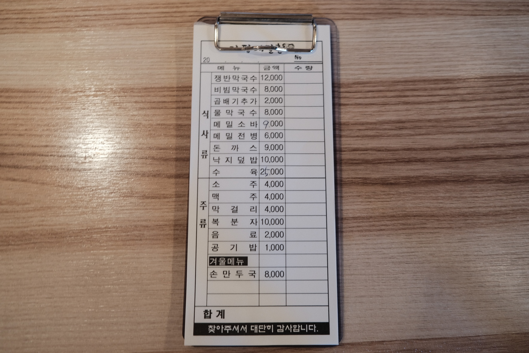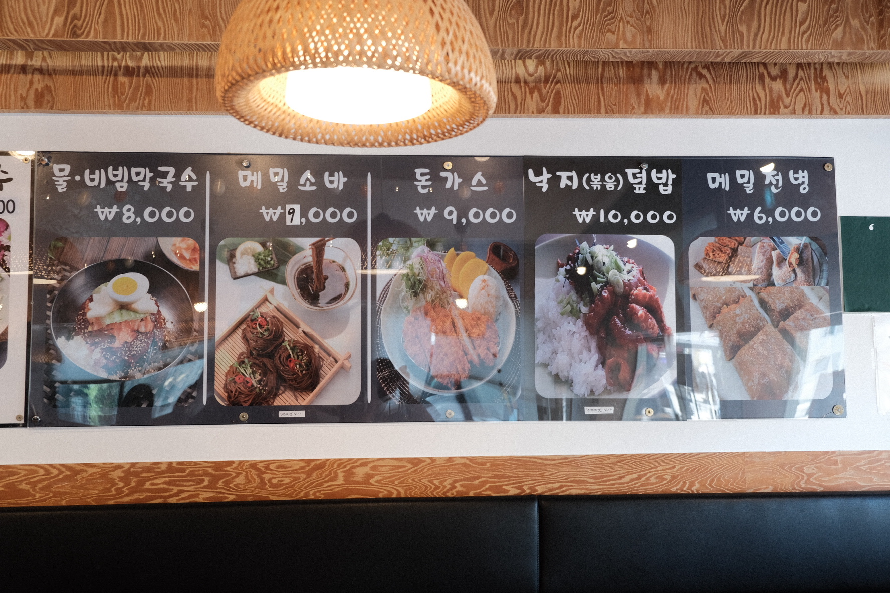비빔 하나에 메밀 소바 하나 그리고 돈가스를 주문했는데, 메밀은 오늘 안된다고 하셨어요.