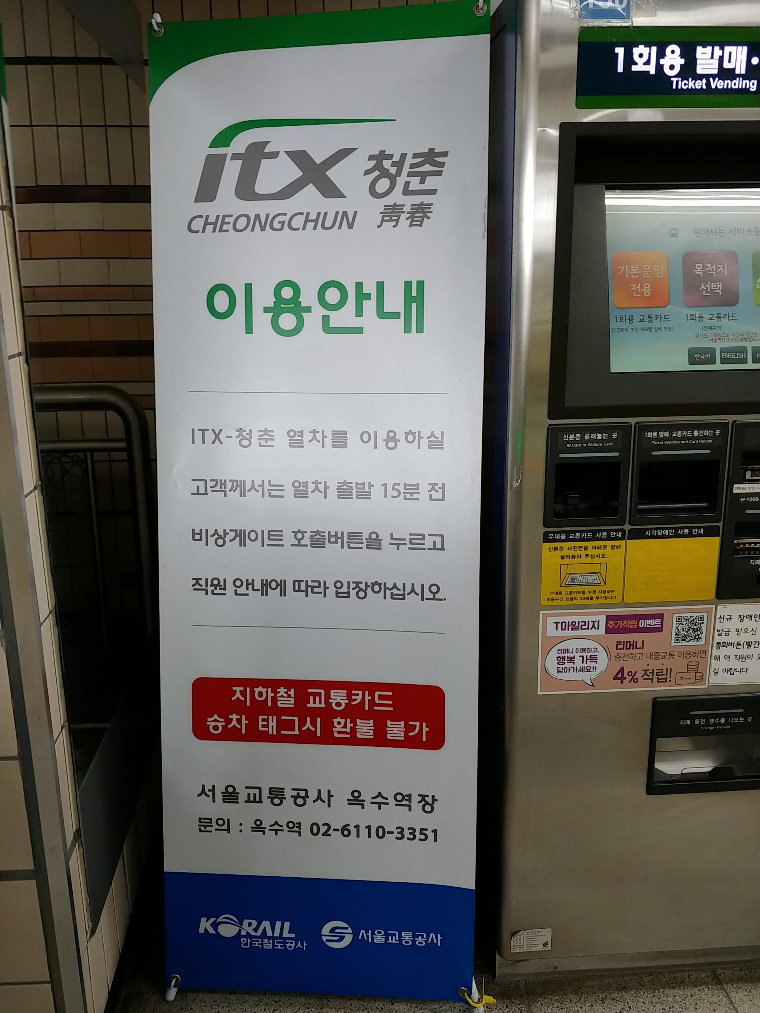 예전에 옥수역 근처에 몇년간 살았는데도, 한번도 ITX를 못타봐서 어디로 가야할지 조금 당황했어요 ㅋ