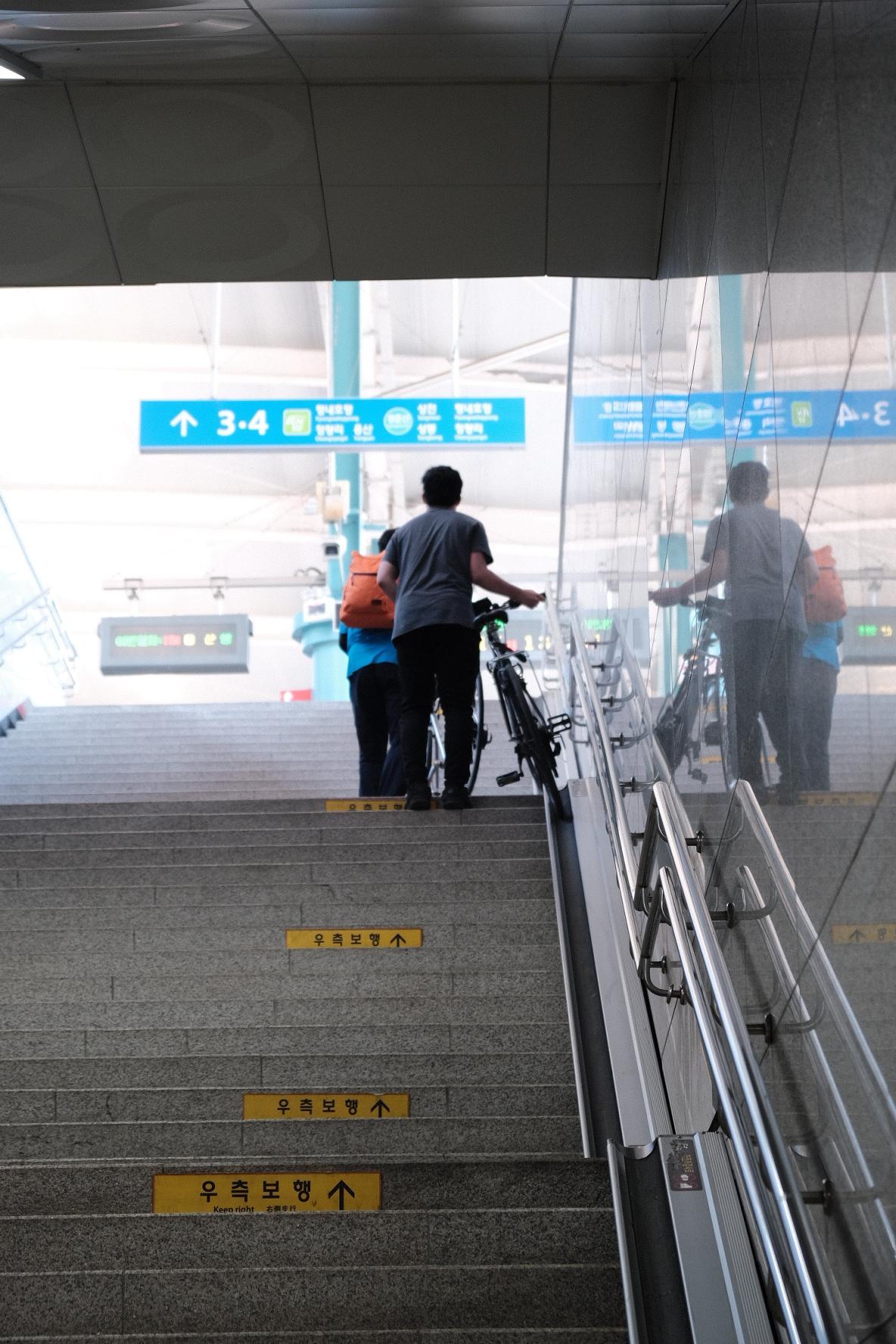 기차역에 도착해서 가니 아빠와 아들이 같이 자전거 타고 오신 부자가 보였어요