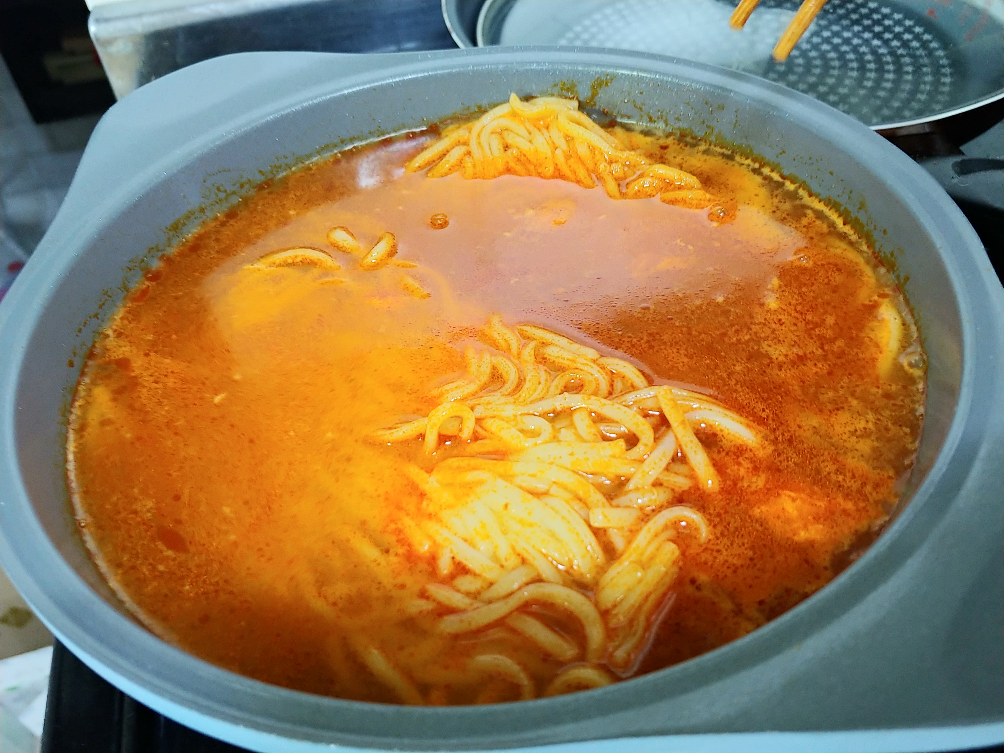 그 사이에 면과 사리 다 투하되어 있는데, 물양이 좀 많네요;;;