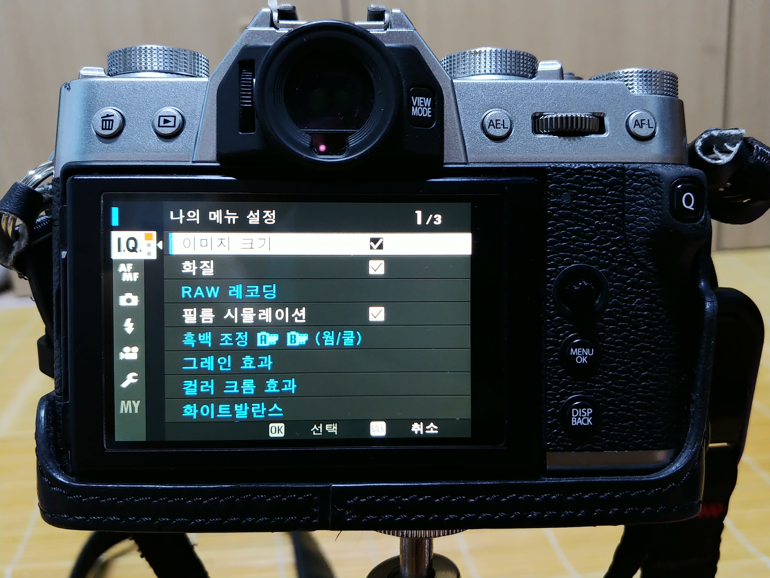 모든 선택이 끝나시고 나가셔서 메뉴 버튼을 누르시면, "이미지 품질 설정"으로 가지 않고 "MY" 메뉴화면이 보여집니다. 물론 Q버튼으로 하면 더 빠르게 변경해 주실수 있는데, 저는 이상하게 Q버튼이 잘 안써지더라구요. 초반에 Q버튼이 너무 쉽게 눌러져서 짜증나는 일들이 있어서 그랬나봐요 (지금은 펌웨어 업데이트로 괜찮아졌어요)