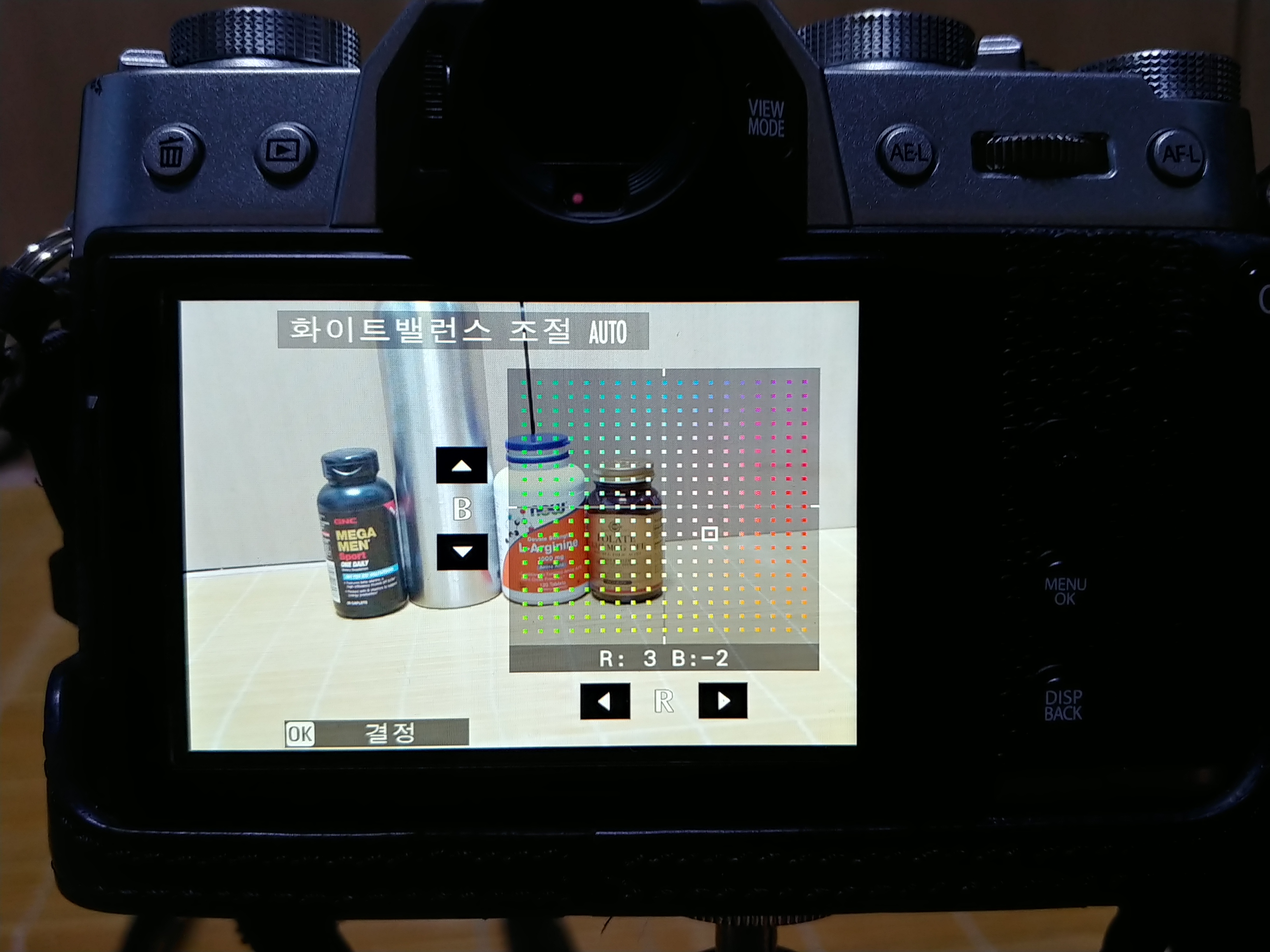 화이트 발란스 메뉴로 가서 오른쪽으로 선택하시면 아래 화면과 같이 기본적인 옵션들(오토, 형광등, 일광등)을 선택할 수 있어요. 거기서 본인이 원하는 옵션에 가서 다시 한번 더 오른쪽으로 선택하시면, 스틱으로 작은네모를 이동할 수 있어요. 그렇게 이동해서 Red와 Blue값을 추가로 설정해 주시면 됩니다.