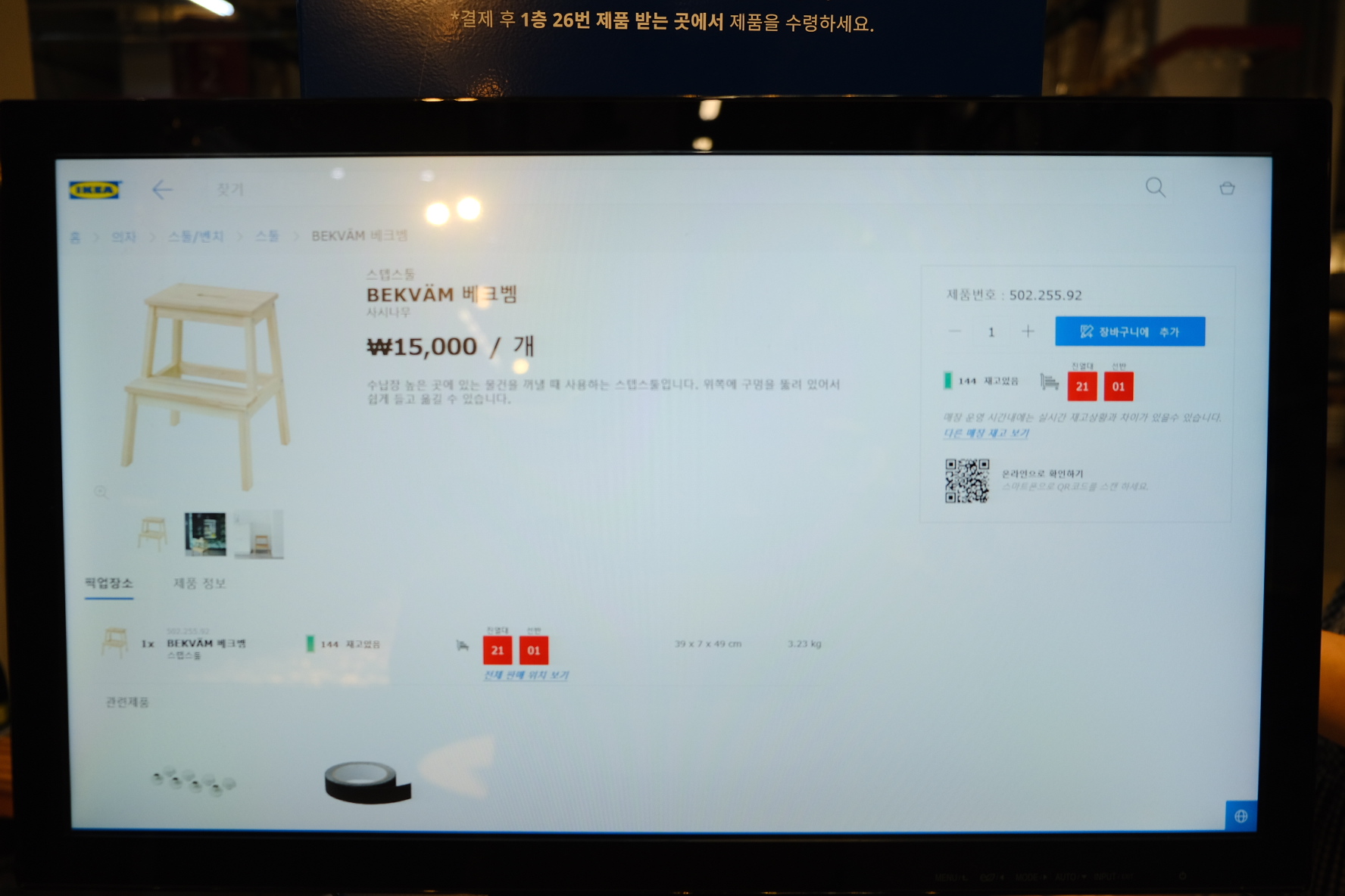 에스컬레이터를 내려가면 바로 컴퓨터가 있어서 찾는 물건이 어디에 있는지 검색해볼 수 있었어요.
